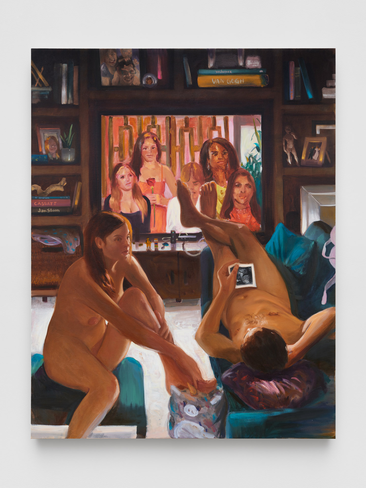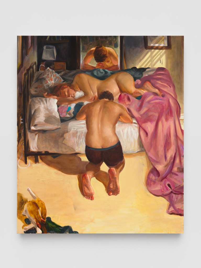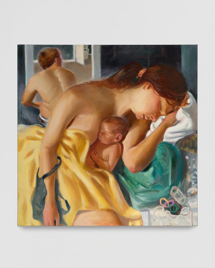 «La obra de Vojtěch Kovařík (1993*) es un panteón donde se aglomeran los dioses y diosas de la mitología griega, donde abundan figuras confinadas en marcos demasiado estrechos para contener el peso de su propio simbolismo. Estos seres, antaño extraordinarios, ya no triunfan. Se les evoca en pinturas y esculturas al estilo de los muralistas Diego Riviera y José Clemente Orozco. Kovařík también se inspiró en las estrategias artísticas nacionalsocialistas prevalecientes antes del colapso de la URSS, dos años antes de nacer en la República Checa. Sus pinturas adoptan los mismos principios: simplicidad y claridad, uso de símbolos, trazos exagerados, colores impactantes, uniformidad y repetición. Kovařík revela la brecha entre las grandes ideologías y mitos que heredamos nuestra cultura y cada uno de nosotros, y cómo perpetúan patrones de opresión. Se dedica a deconstruir la autoridad, desmantelando las grandes narrativas y sus héroes, dejando rastros de la mitología individual y dándoles una nueva relevancia».