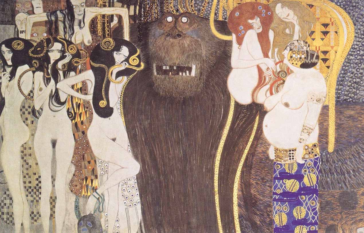 Con frecuencia, el desnudo adquiere carácter simbólico, como en el friso del «La lucha del bien y del mal», que forma parte del conocido Friso de Beethoven elaborado para la XIV exposición de los secesionistas vieneses.