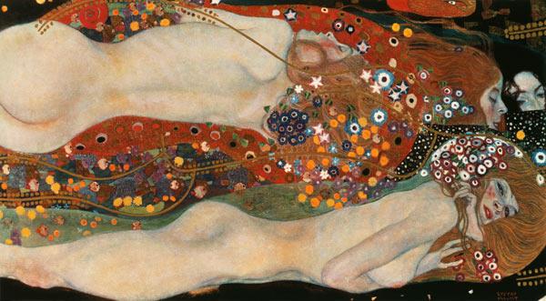 No son siempre tan oscuras las obras de Klimt. Aquí algunas con una gran belleza por el colorismo y la composición. Algunas obras de Chagall me recuerdan a estas figuras.