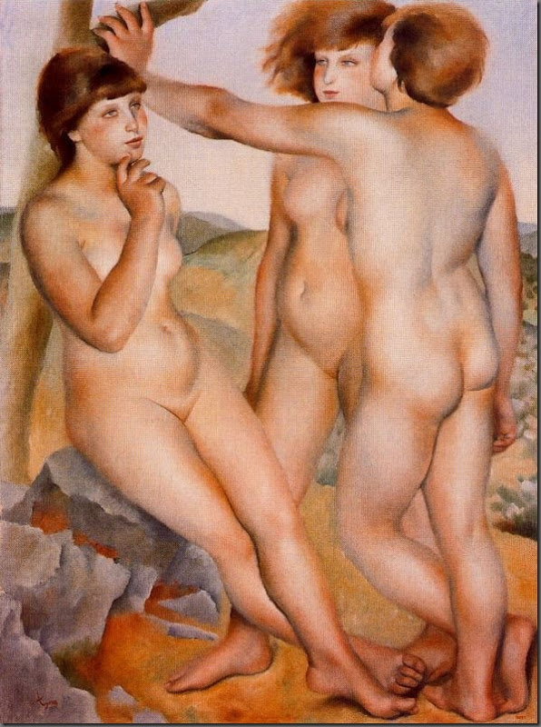 Josep de Togores (1893-1970) fué un destacado pintor español inscrito en la vanguardia artística catalana y europea de primeros de siglo con una evolución muy peculiar que lo fué alejando de la misma para inscribirse en un cierto clasicismo que lo llevó al olvido del que fué rescatado a finales del siglo XX. En su trayectoria artística inical existe un cierto paralismo con la evolución de Picasso. Desde un neo-impresionismo marcado por la influencia de Cézanne, como en estos «Tres desnudos»