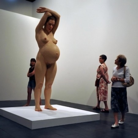 Todavía existen muchas personas que consideran que el arte debe reproducir la realidad. Posiblemente para ellas la cumbre de la expresión artística corresponda al movimiento hiperrealista. Sin embargo esto no es estrictamente cierto. El Hiperrealismo muestra una visión fotográfica, extraordinariamente detallista de la realidad, bastante diferente a cómo la percibe el ojo humano. La presencia del artista parece desvanecerse y el efecto logrado, en mi opinión, tiene algo de desasosegante. Esto resulta particularmente destacado en el caso de un artista, como el que vemos aquí, que construye sus esculturas con unas dimensiones «sobrehumanas». Ron Mueck (Melbourne, Australia, 1958) tiene obras que forman ya parte del acervo artístico clásico, como este desnudo