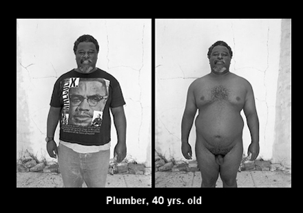 Greg Friedler (New Orleans, 1970-2014) fue un destacado fotógrafo (algunos prefieren utilizar para él el término de artista visual) cuya obra parece centrarse de un modo exclusivo en el retrato y el desnudo. Durante dieciséis años realizó numerosos retratos en Los Ángeles, Londres y Las Vegas, en los que confrontaba personas desnudas con su imagen vestida. Hombres y mujeres, blancos y negros, personas de todas las edades, cuerpos gruesos y delgados, atléticos y claramente obesos. Mujeres embarazadas, cuerpos tatuados,…En su obra se muestra la amplia diversidad del cuerpo humano. Son desnudos poco artísticos, si entendemos por ello el intento de mostrar una imágenes idealizadas o formas sugerentes. La luz plana incide sobre estos binomios desnudo-vestido realizados en un mismo decorado anodino creando imágenes que parecen las de un pasaporte o documento de identidad. No se recrea con el desnudo. Nos lo muestra y dice que somos así, sin más. Iguales y diferentes los unos de los otros.