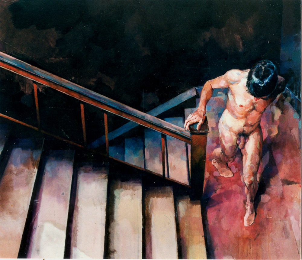 Conozco muy poco de la vida de Glenn Ibbitson, salvo el hecho de que se trata de un artista británico que trabaja en Gales. Ibbitson se ha ido abriendo paso en el mundo del coleccionismo gracias a exposiciones en varias galerias europeas y americanas, presentándonos unas composiciones basadas en el cuerpo humano que, a decir del autor, nos describen un cuerpo aislado, realista, mostrando sus imperfecciones y asimetrías y muy vulnerable. Tenemos ante nosotros a un artista visual que también trabaja para el cine y, fundamentalmente, televisión (BBC). En su pintura se observan composiciones con perspectivas forzadas, trampantojos y toda suerte de recursos ópticos. Ironía, en muchos casos.