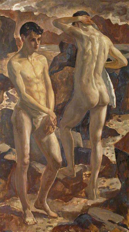 No he encontrado análisis de la obra del artista escocés Robert Sivell (Paisley, Renfrewshire, Reino Unido, 1888-1958) y mucho menos sobre su aparentemente escasa producción de desnudos. Se trata de un importante retratista que desarrolló su actividad en la primera mitad del siglo XX creando retratos muy realistas en los que se aprecia la herencia del Renacimiento europeo. Solía pintar óleos sobre madera, con colores oscuros y dominio de los ocres. Dentro del desnudo artístico, sus obras mas destacables son las que, como murales, realizó en la Universidad de Aberdeen entre 1938 y los primeros cuarenta, así como los óleos preparatorios para los mismos. Su extraordinaria naturalidad y expresividad creo que lo hacen merecedor de un puesto en la Historia del Arte del Siglo XX.