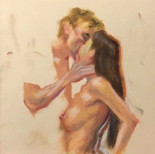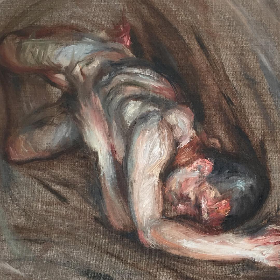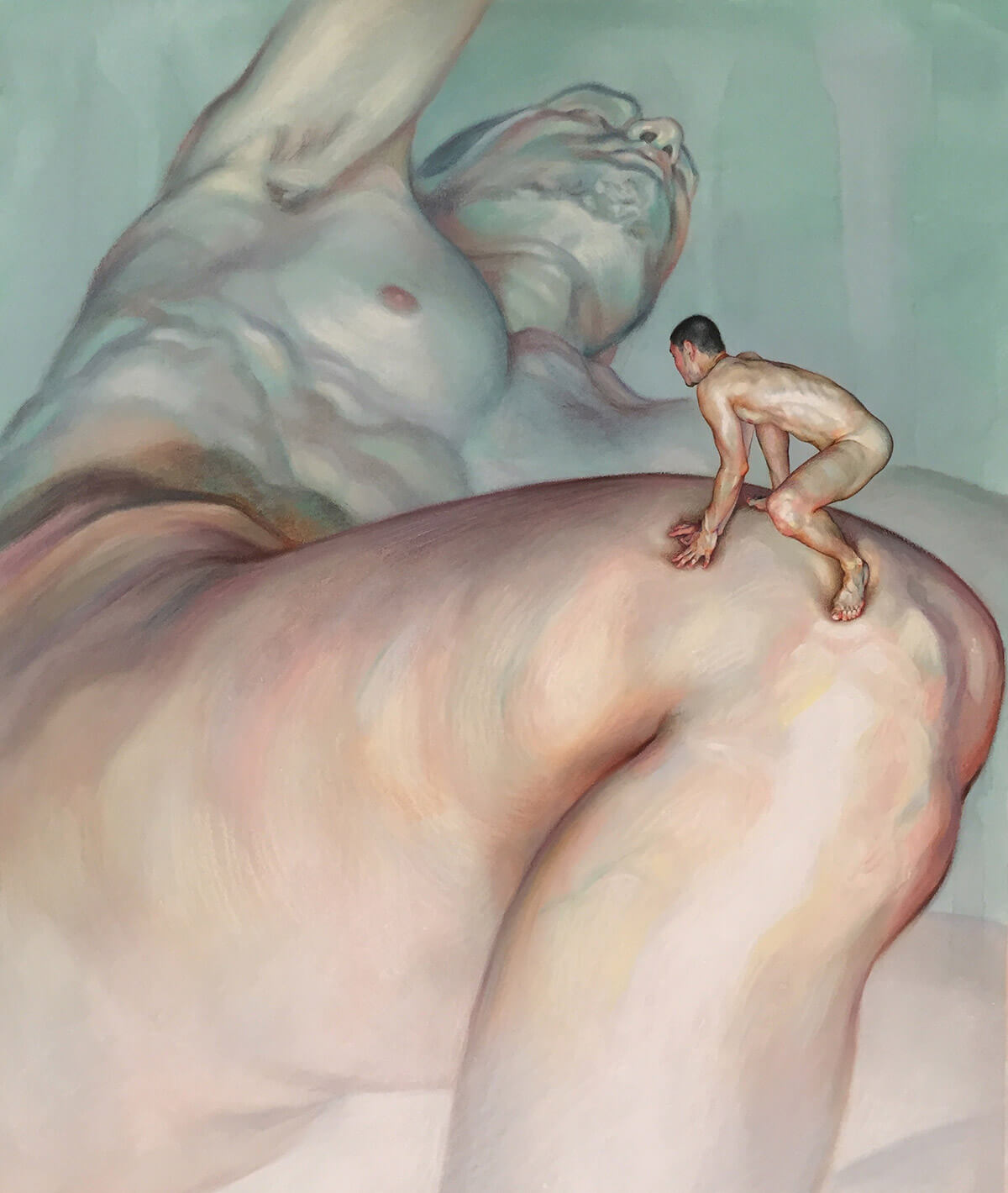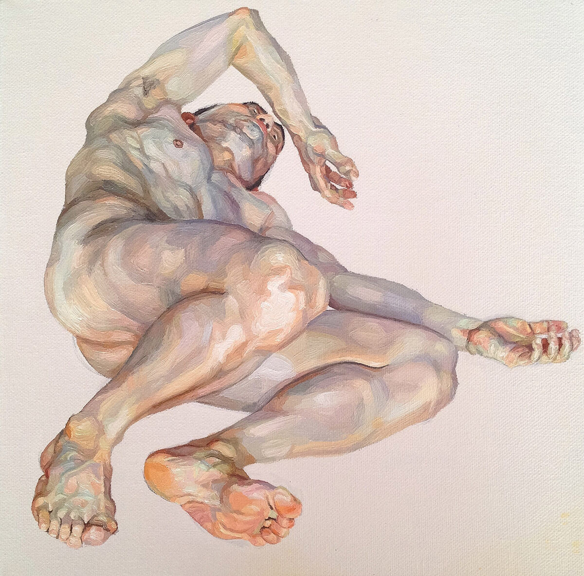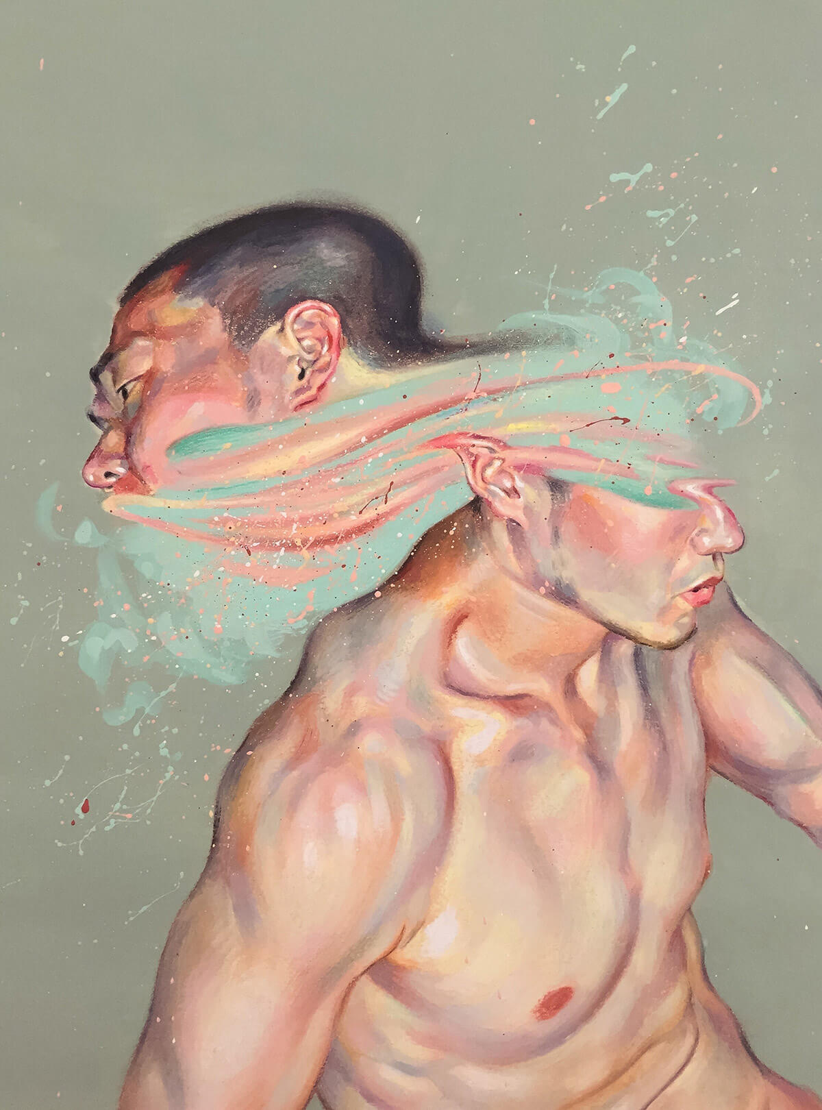 «Suelo pintar desnudos. Fascinado por las pinturas de Lucian Freud, me dedicaba principalmente a expresar las curvas abstractas del cuerpo humano y el color infinito de la superficie de la carne (sentí olores de carne en sus pinturas). Y luego, en los últimos años, la idea se ha expandido al trabajo conceptual y metafísico. Lo que intento hacer, cuando planifico mi trabajo, es expresar la dimensión espiritual que existe más allá de la superficie de la piel. No es físicamente perceptible, por lo que es interesante poder expresarse libremente. Planeo estudiar cómo sintetizar resumen y concepto y continuar mi trabajo. «