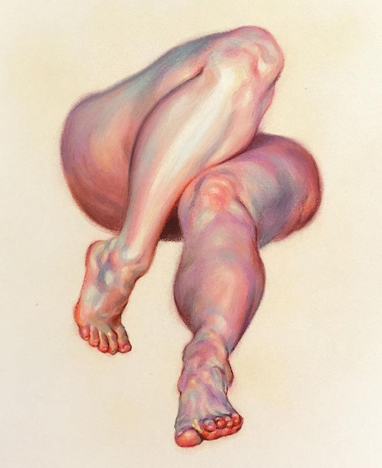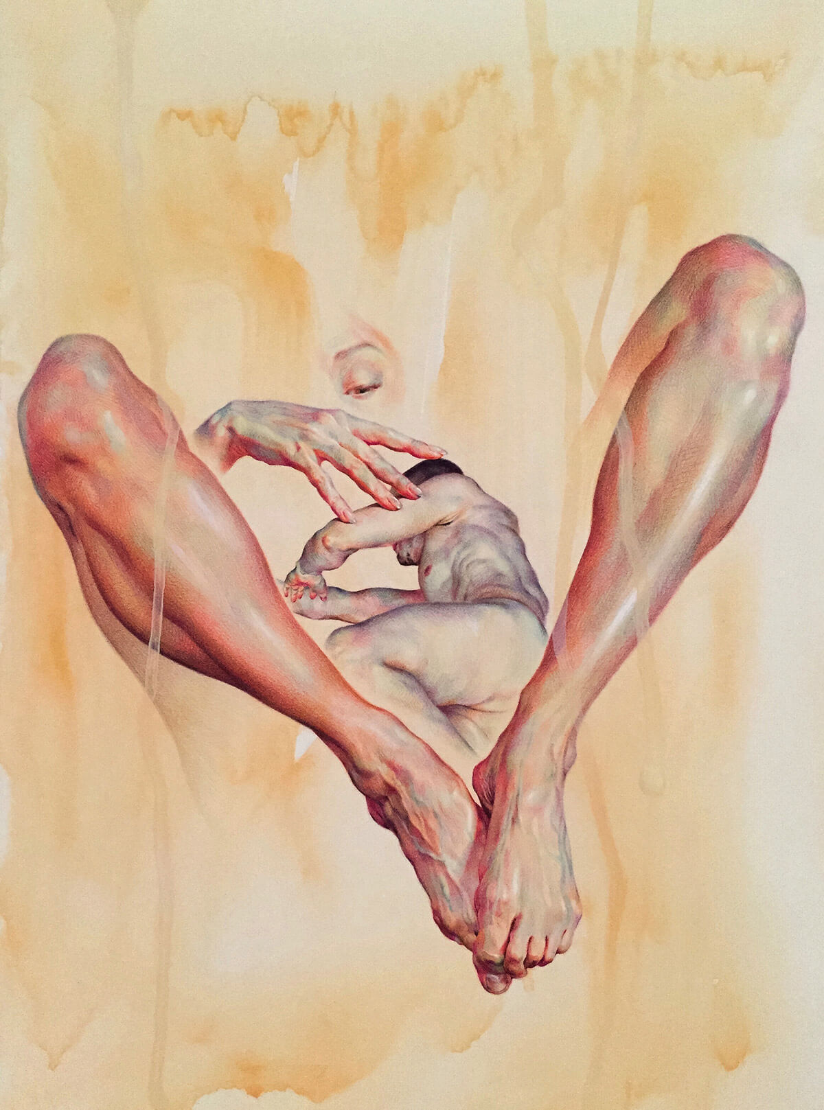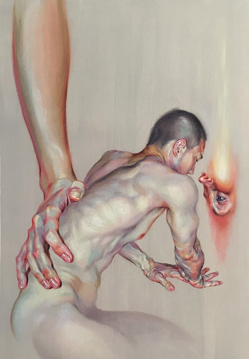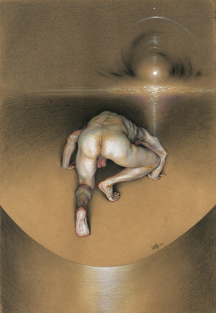 Los dibujos de Wanjin Gin (República de Corea, 1981) aúnan el surrealismo con una expresión realista que parece salir del renacimiento europeo. Esto resulta muy notable en lo que respecta a manos y pies, que protagonizan, casi de un modo obsesivo, la mayoría de una obra consagrada al desnudo.
