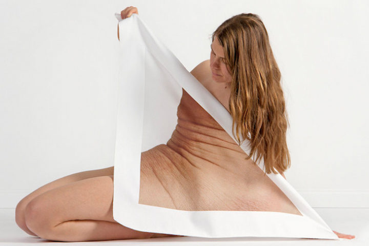 Melten Isic (Ankara, Turquía) es una fotógrafa que centra preferentemente su atención en el cuerpo humano. Entre su producción destacan dos series de carácter muy diferente. En «Twice into the stream» («Dos veces en la corriente») – que me parece la másinteresante – nos presenta imágenes ampliadas del distintas zonas corporales superpuestas a una foto general del mismo, que parecen destinadas a una autovisón del modelo. Una mirada inquisitiva sobre el propio cuerpo en la que el lienzo hace el papel de espejo de amplificación.