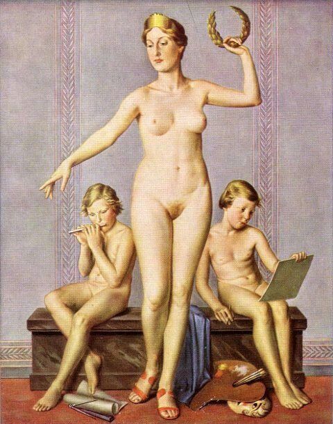 Adolf Ziegler (Bremen, Alemania, 1892-1958) fue el pintor favorito de Hitler. Su estilo heredero de ese realismo que dominó gran parte del siglo XIX, muestra formas modernistas, con una iconografía muy ligada al mundo grecorromano que le permitió enfatizar los ideales físicos de la raza aria: valientes guerreros ellos y mujeres cuya única función parece estar ligada a la reproducción y a la vida doméstica. Unas imágenes frías, estereotipadas, que dejan poco a la la imaginación. Algunos de sus colegas lo intentaron ridiculizar otorgándole el título de «Maestro del bello púbico alemán».