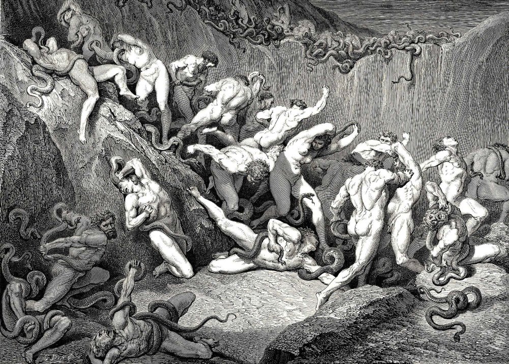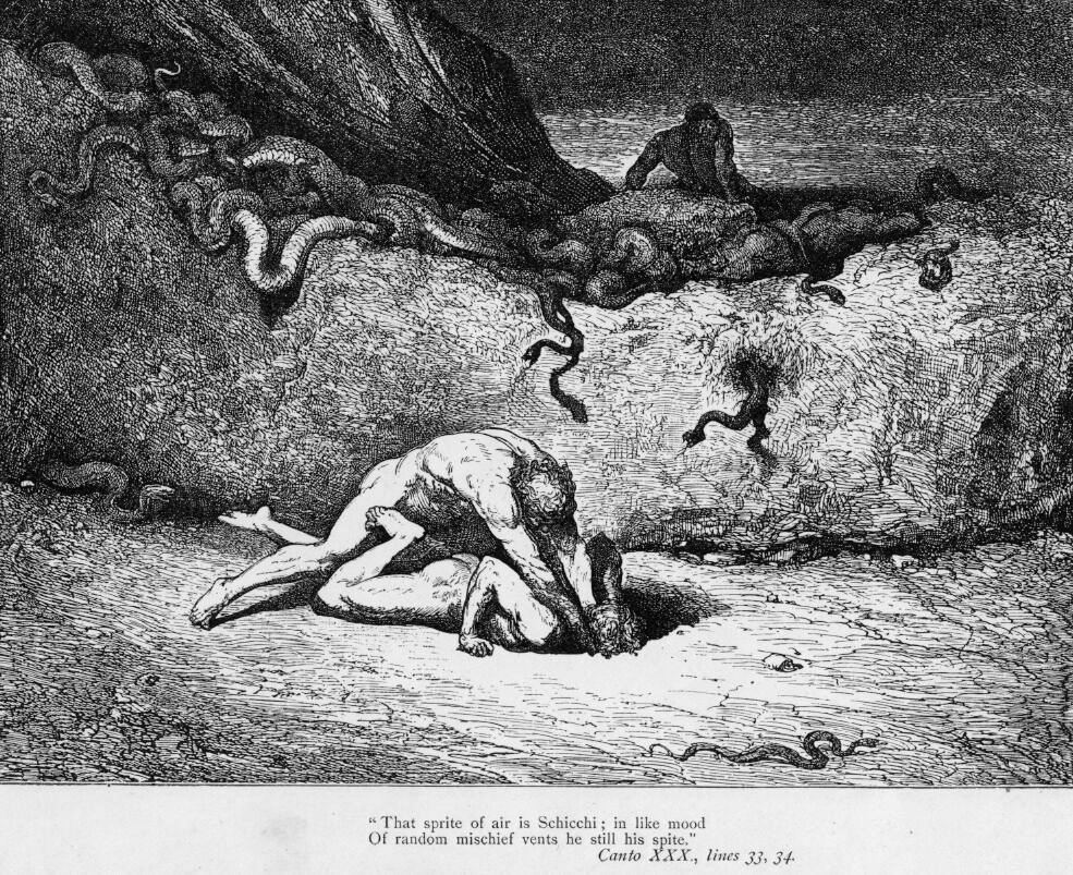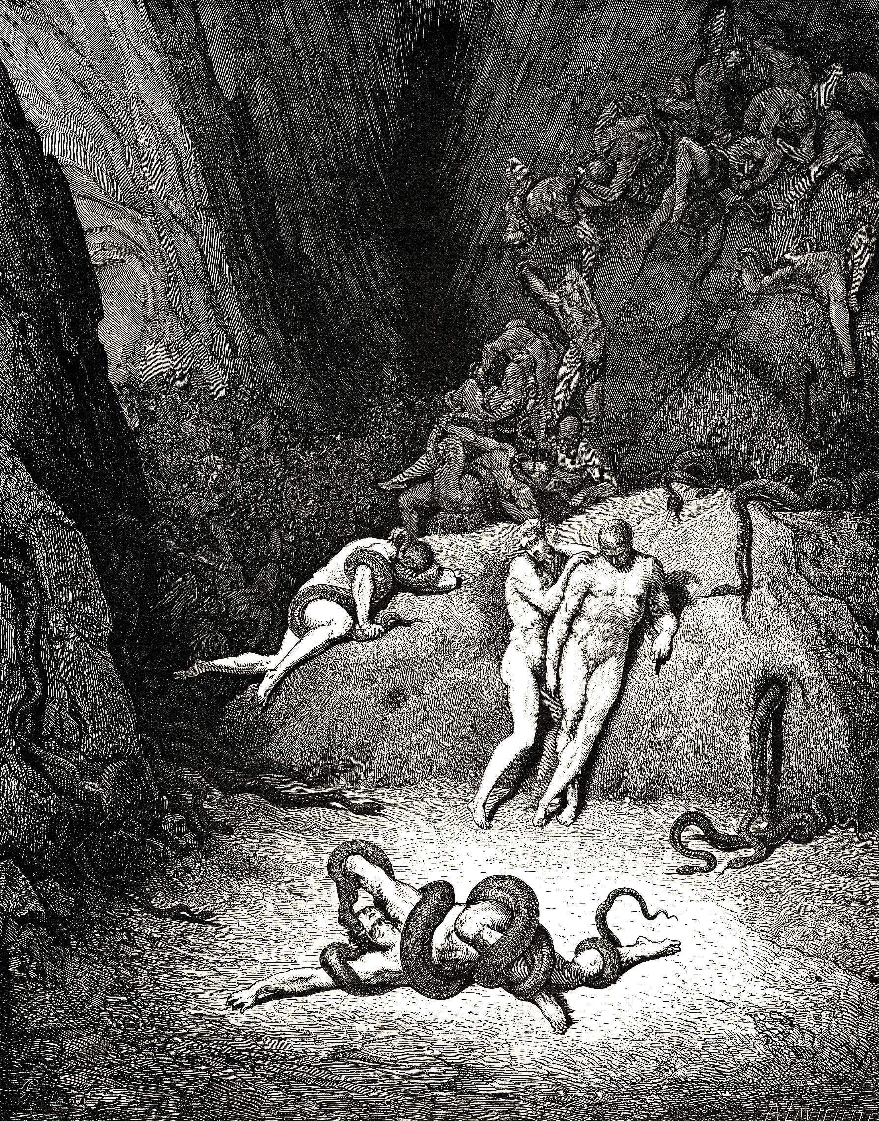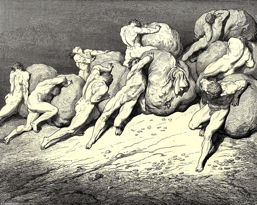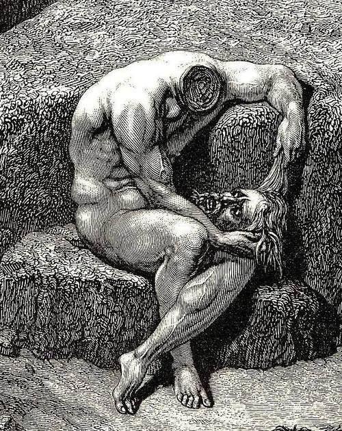 Una de las figuras más destacadas de la ilustración francesa del siglo XIX, fue Paul Gustave Doré (Estrasburgo, Francia, 1832-1883). Extraordinario dibujante, tuvo una gran fama como grabador, aunque también pintor y escultor. Como tal no sólo ilustró muchas obras de sus coetáneos sino también los grandes clásicos, como la Biblia, El Quijote, El Paraíso Perdido o la Divina Comedia. Su estilo romántico, y al mismo tiempo visionario, fue alabado inmediatamente por un público internacional y ejerció una gran influencia tanto en el propio movimiento romántico como en el surrealismo posterior. Para ver sus desnudos debemos centrarnos en las numerosas ilustraciones realizadas para el Infierno, de la Divina Comedia de Dante. Les muestro algunos ejemplos: