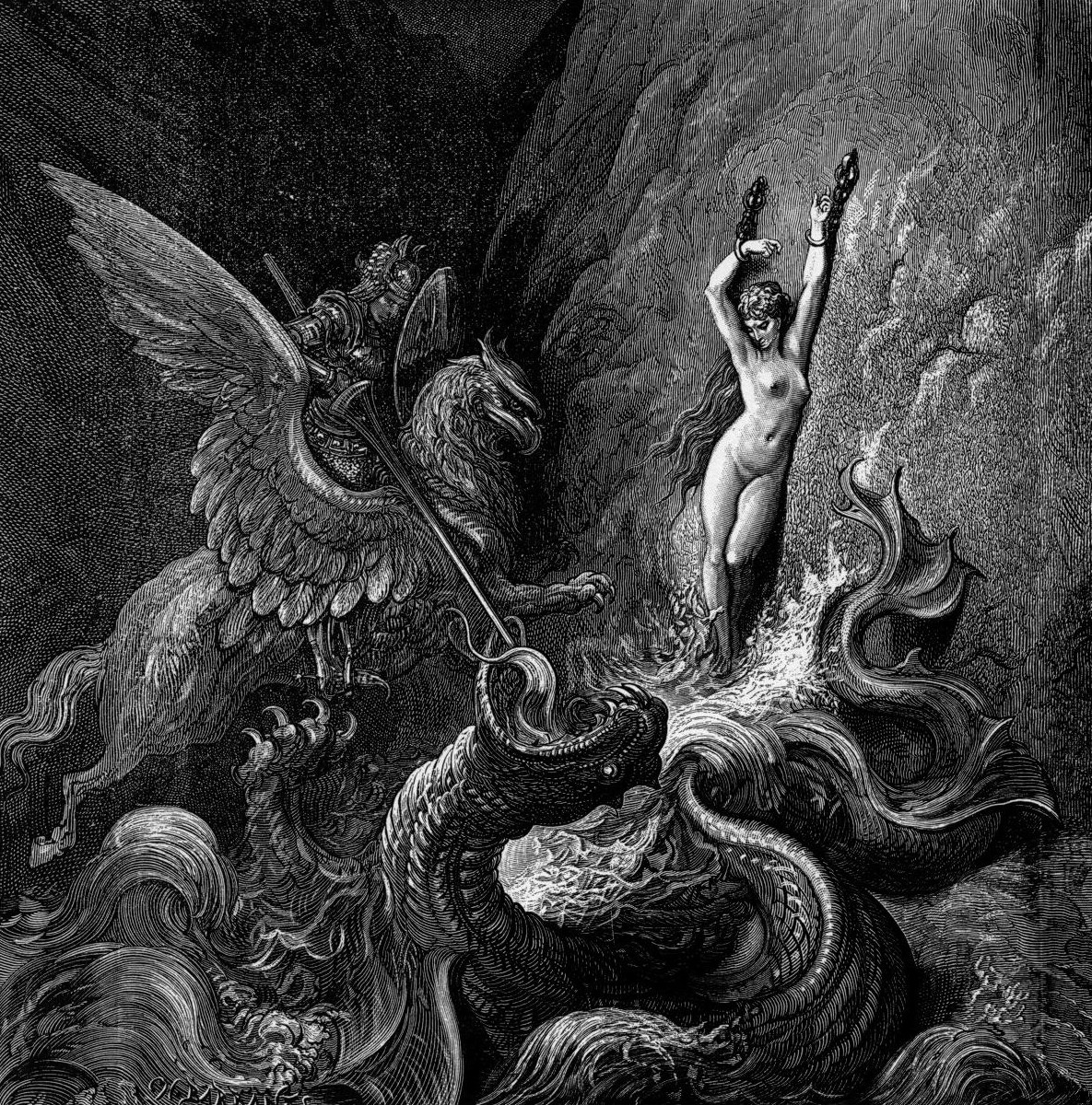 Tomo de sus ilustraciones del Orlando Furioso de Ariosto, las siguientes imágenes: