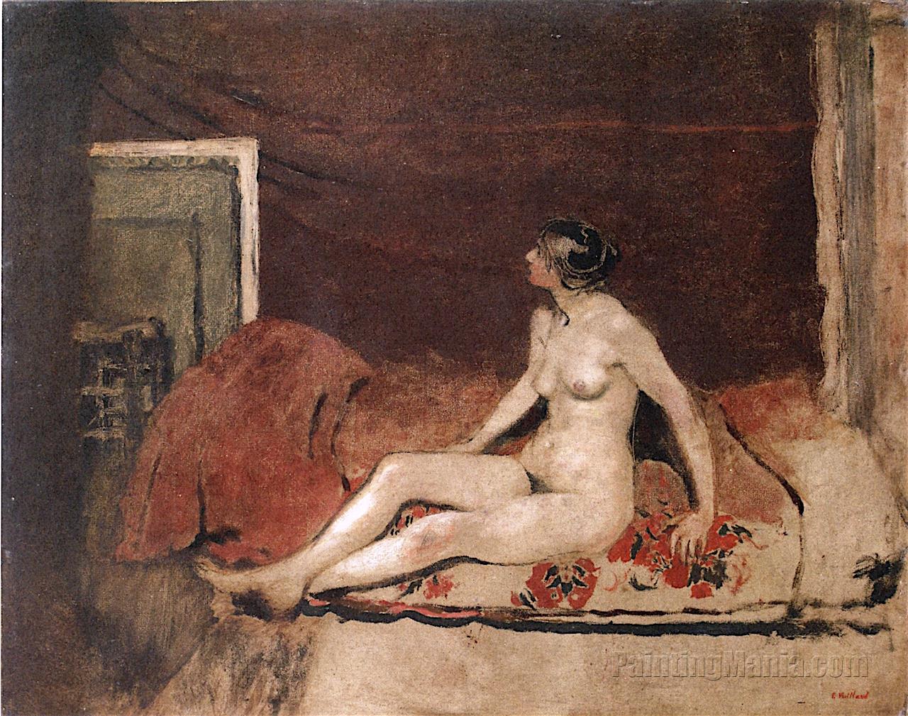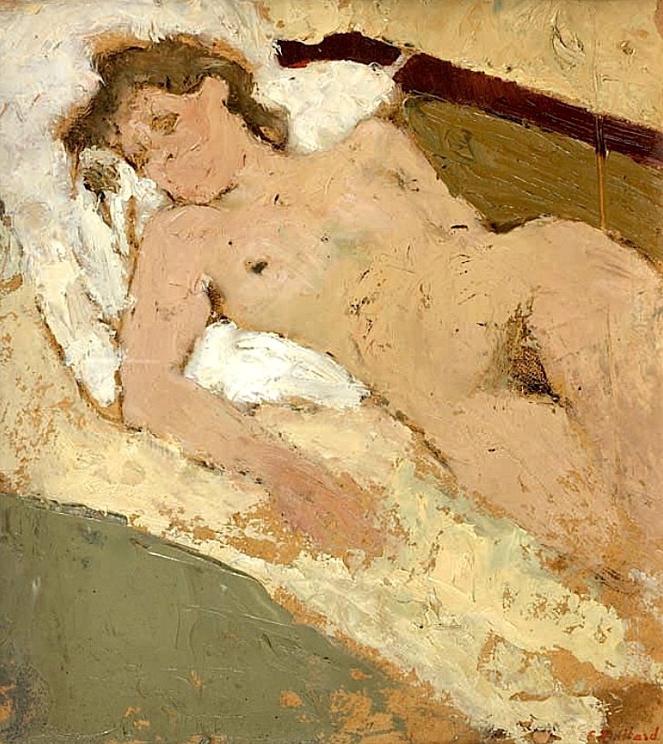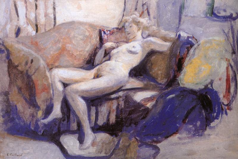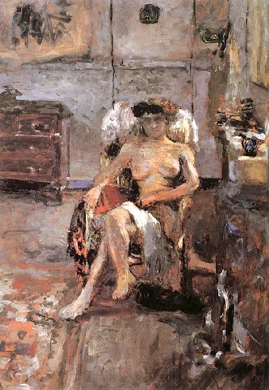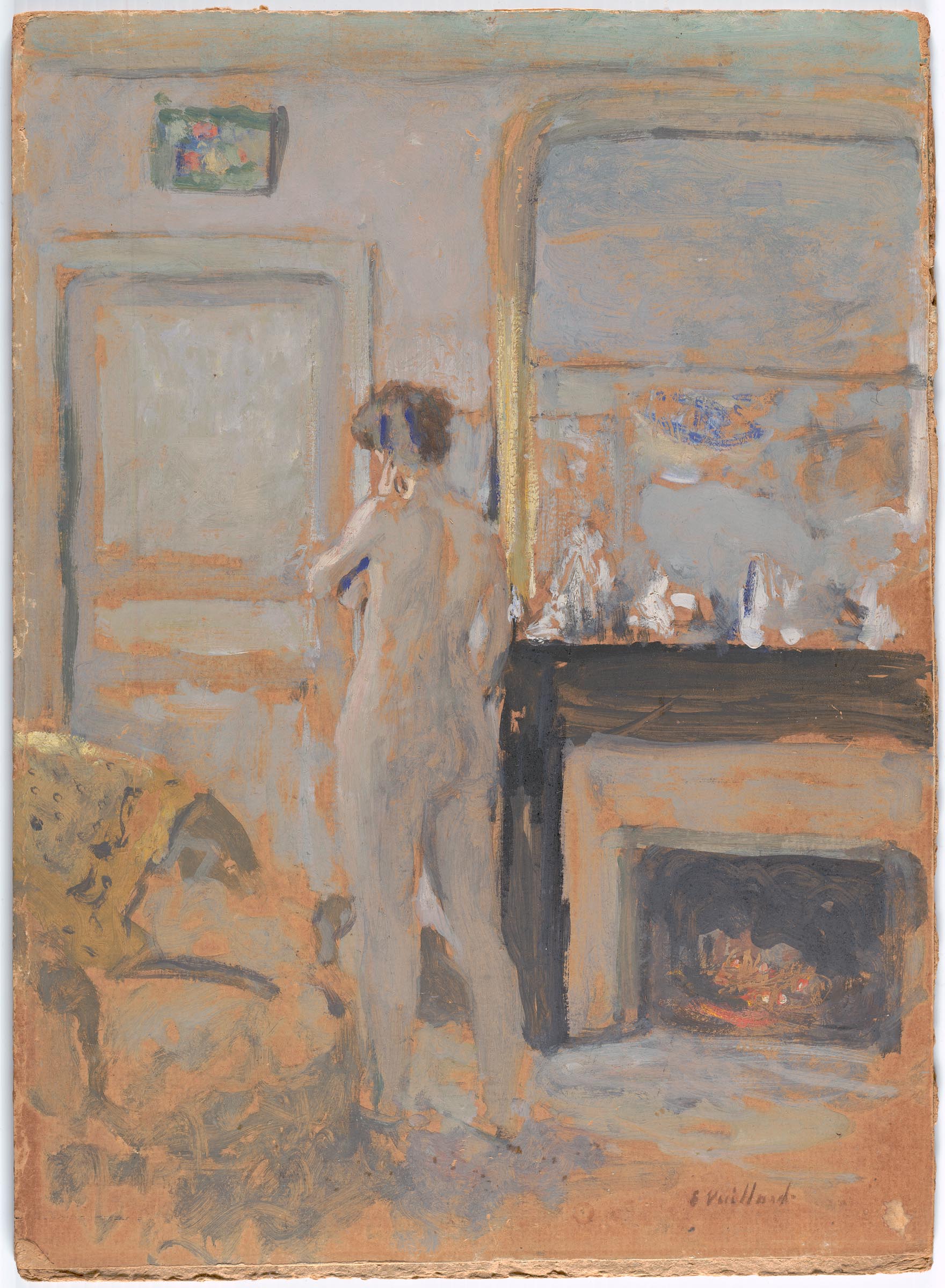 Jean-Édouard Vuillard (Cuiseaux, Borgoña, Francia, 1868-1940) fue uno de los miembros más destacados del grupo posimpresionista conocido como los «Nabis» («profestas» o «iluminados» en hebreo). Se trata de un pequeño grupo implantado sólo en Francia en los últimos años del siglo XIX que, bajo la influencia de la obra de Gauguin, presta una máxima importancia al color (colores planos fuertemente delimitados por trazos más oscuros) sobre cualquier naturalismo formal y con un gran interés decorativo. Los Nabis tomaron el relevo de los simbolistas y constituyeron el vínculo entre éstos y los expresionistas del siglo XX. A este movimiento pertenecen artistas ya comentados, como Félix Valloton, Paul Ranson, Pierre Bonnard o, en escultura, Aristide Maillol. Su estilo se fue suavizando hacia finales de su vida, retratando, en particular, escenas de la vida doméstica de la burguesía del momento. Ya, antes de finalizar el siglo había pintado interiores protagonizados por su madre, su hermana, y algunas obreras del taller de corsés en el que trabajaba la primera. Quizás sean éstas sus obras más famosas. Frecuentemente en estas obras las figuras y los fondos reciben el mismo tratamiento por un artista que, según se cita en un magnífico artículo del Musée D’Orsay, comentó: «Yo no hago retratos. Yo pinto a la gente en su casa«.