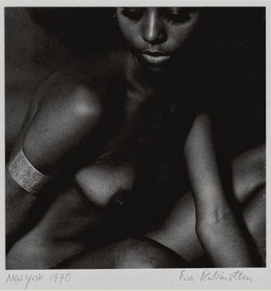 Incluso en nuestros días, la mirada femenina sobre el desnudo es relativamente escasa. Eva Rubinstein (Buenos Aires, Argentina, 1933) es, pese a su nacimiento, una artista polaca, hija del célebre intérprete de Chopin, Arthur Rubinstein. Si hago esta referencia no es porque la artista necesite de la notoriedad de su padre para poder destacar, sino para mostar su vinculación con el pais europeo cuya nacionalidad compartió con la estadounidense. Eva Rubinstein se inició como bailarina, y su carrera fotográfica se forjó en los Estados Unidos a partir de 1967, año en el que se divorció de su marido, un pastor protestante. Ejerció fundamentalmente de fotorreportera, pero, al mismo tiempo mantuvo una producción personal en la que se aprecia siempre un tono íntimo que creo que muestran muy bien en sus desnudos: