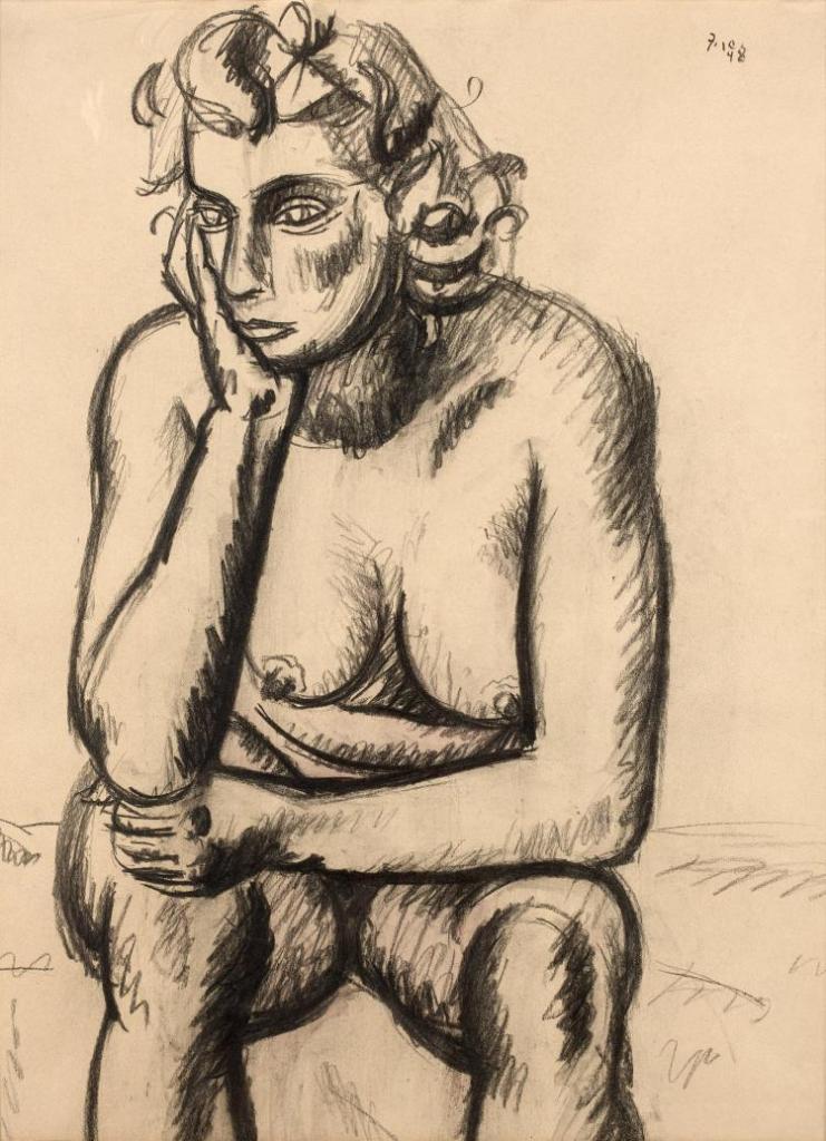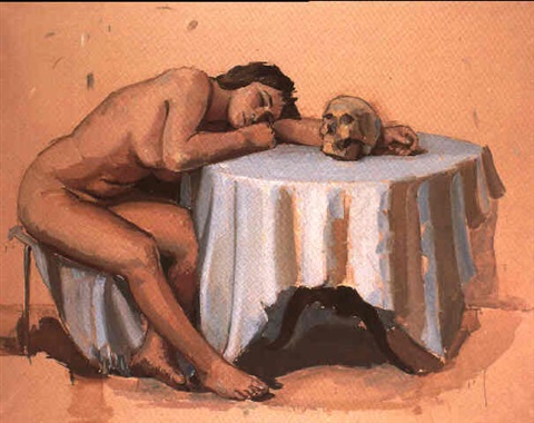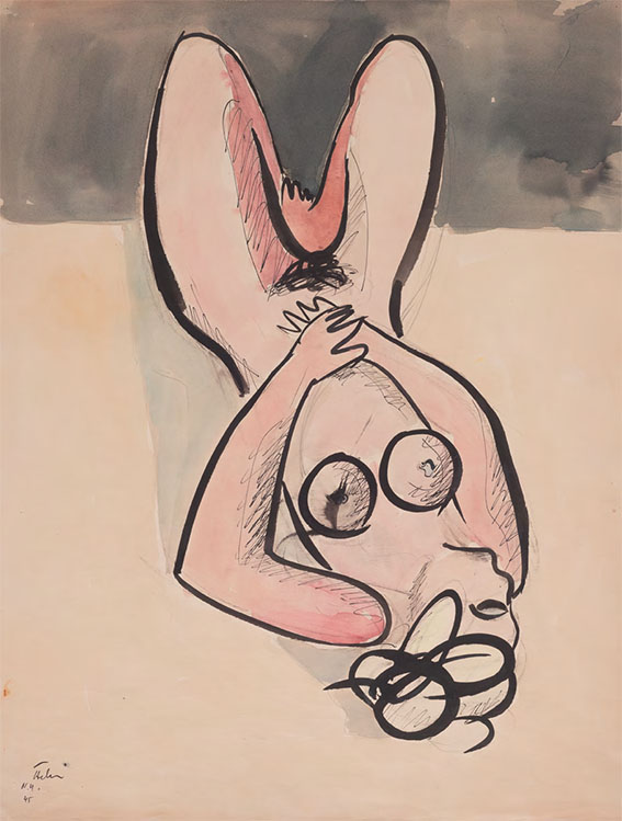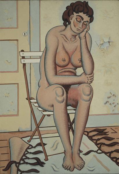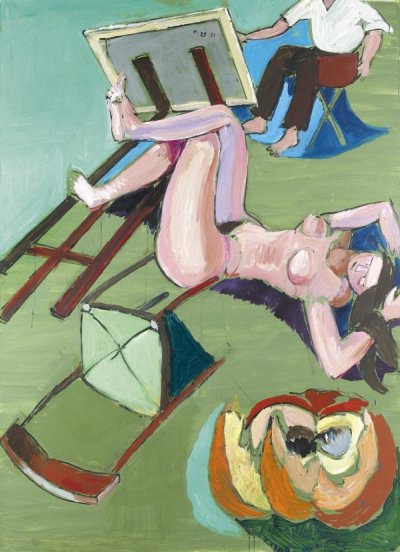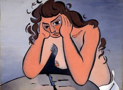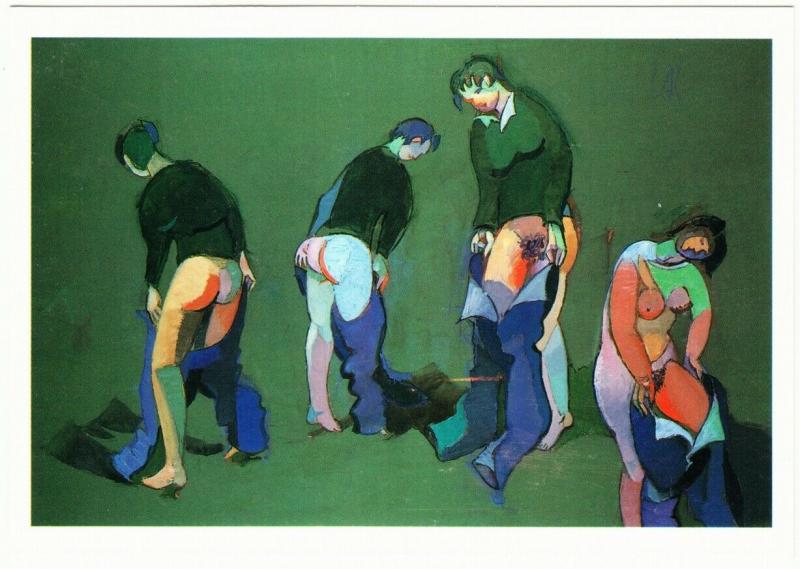 Jean Hélion (Couterne, Francia, 1904-1987) fue un artista con una biografía y desarrollo artístico bastante curioso. Se formó como químico industrial, trabajó luego como ayudante de un arquitecto y, en ese periodo empezó a frecuentar el Louvre en el que se autoformó artísticamente. En los años 30 su obra, influenciada por el cubismo y la abstracción geométrica de Mondrian, era completamente abstracta y se mantuvo dentro del grupo «Abstraction-Création» dirigiendo su revista homónima. Su estilo fue evolucionando hacia la figuración (lo que resulta inusual), que desarrolló de un modo continuo desde los años 40 hasta su muerte. Su obra, muy colorista, con unas envolventes curvas muy características en sus figuras, tuvo una gran influencia en artistas como Arroyo y, de un modo general, en la figuración alemana de los años 70 y 80.