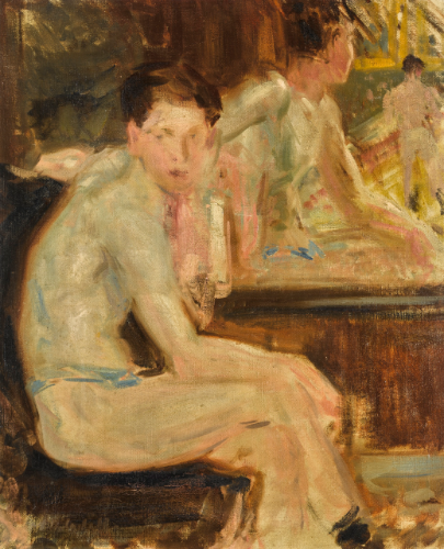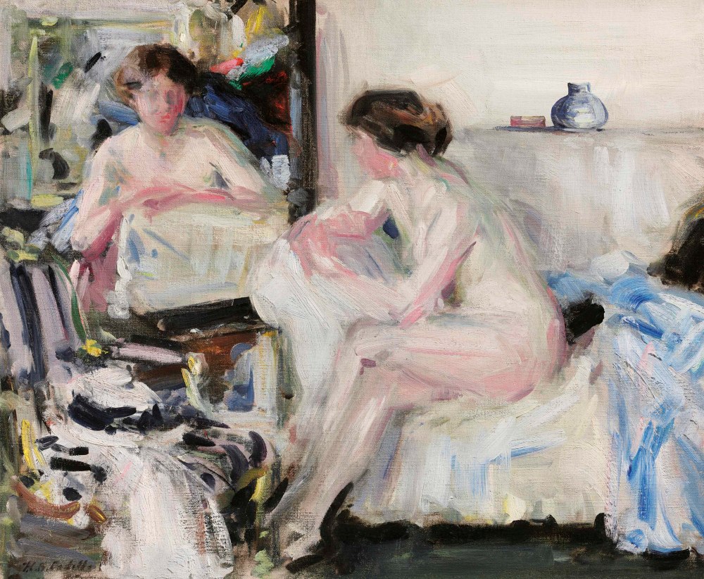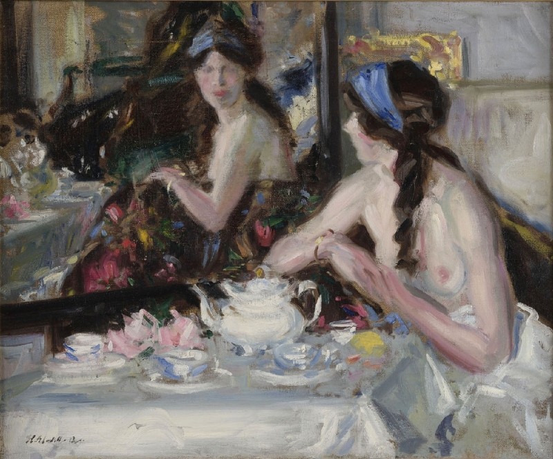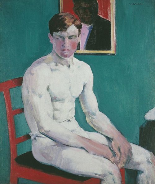 Francis Cadell (Edinburgo, Reino Unido, 1883-1937) se destacó como uno de los coloristas escoceses más destacados. Su técnica impresionista – aprendida durante su permanencia en la Academie Julian de París – se caracterizó inicialmente por una gama cromática basada en tonos suaves pero que, en la década de los 20, dió paso a colores mucho más estridentes, entre los que se destaca el naranja. Fundamentalmente nos legó paisajes de interior y retratos. No abundan los desnudos pero algunos de los mismos me parecen muy interesantes.