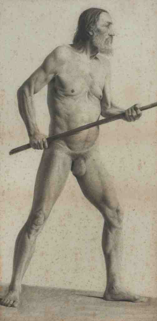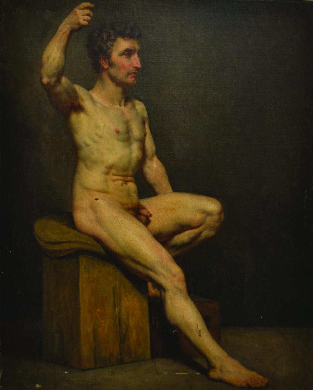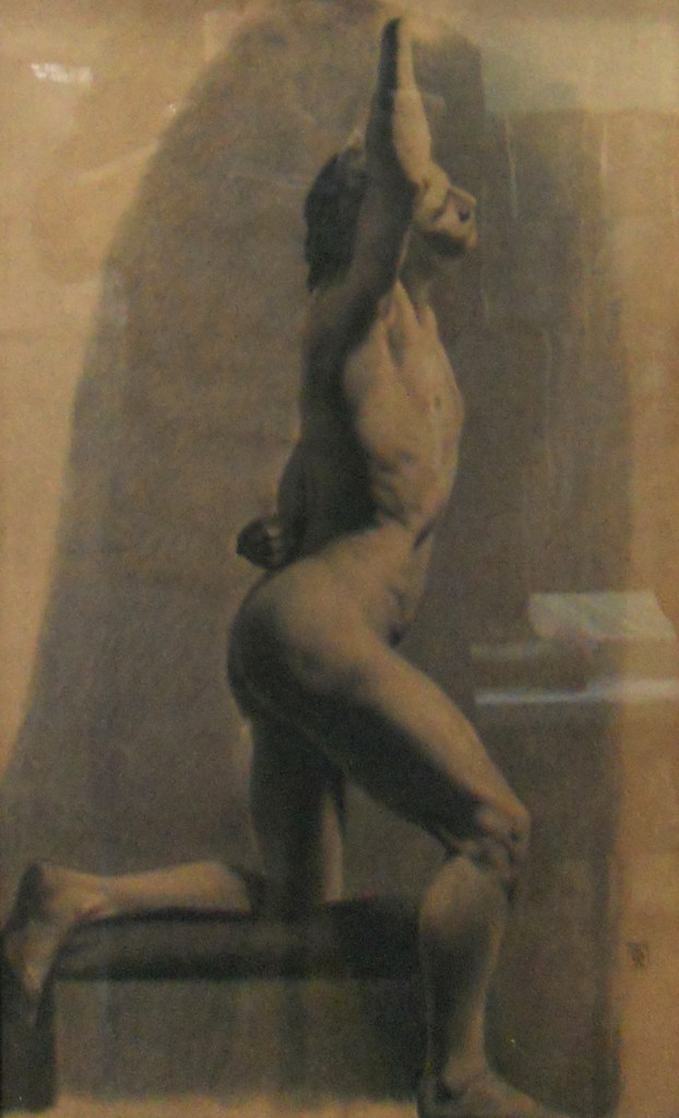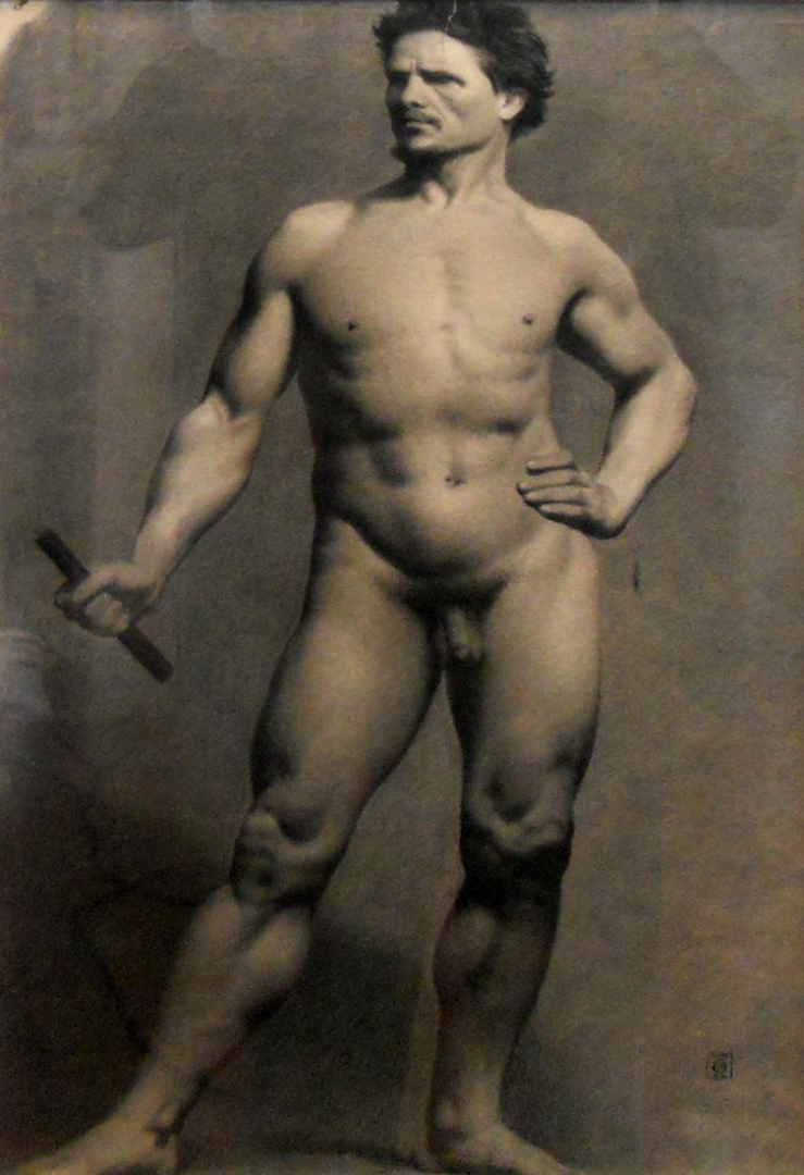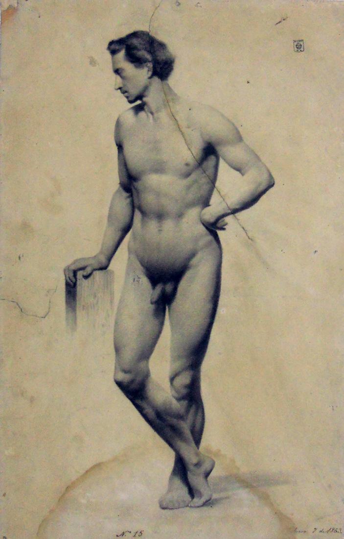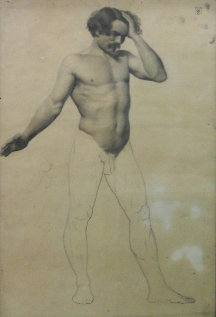 Contrasta la escasez de pinturas con la abundancia de dibujos. Desnudos masculinos academicistas, en la más pura tradición realista que existía en Europa.