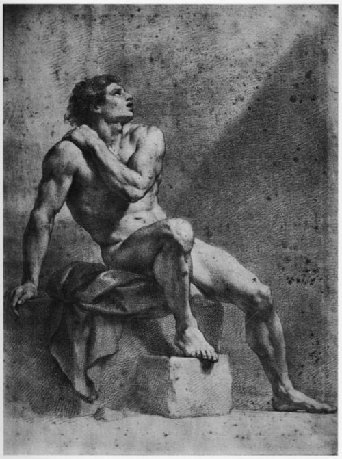 Anton Raphael Mengs (Ustinad, Bohemia, Chequia, 1728-1779) fue un pintor y teórico que contribuyó al desarrollo de las ideas neoclásicas. Su padre, Ismael Israel Mengs, era un pintor de la corte y le puso un nombre derivado de los dos artistas que más admiraba: Anton (Antonio Allegri, alias Correggio) y Raphael (Rafael Sanzio). Este último tuvo una gran influencia en su obra, después de su iniciación clasicista en Roma. En este lugar vivió varios años y contrajo matrimonio con una italiana. También resultó fundamental su amistad con Johann Joachim Winckelmann, pionero de la arqueología moderna, del gusto neoclásico, y conservador de las antigüedades greco-romanas del Vaticano. Los desnudos en su pintura, que les mostraré a continuación, mantienen en general esa referencia mitológica. No obstante – en mi opinión – resultan mucho más destacables sus dibujos que revelan un fuerte conocimiento anatómico. No fueron sus desnudos, sin embargo, los que le dieron la fama, sino sus retratos para las distintas cortes europeas, especialmente la española (Carlos III, Carlos IV y María Luisa de Parma).