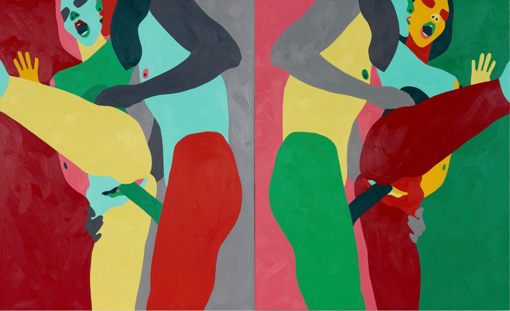 Cuando me he enfrentado a la obra de Helen Beard (Birmingham, Reino Unido, 1971) no he podido sustraerme al recuerdo de la pintura de Joan Semmel. Helen Beard mantiene la misma producción erótica de grandes dimensiones y colores irreales y extremos. La sexualidad mostrada es incluso más directa que la de Semmel, pero la visión, desde el punto de vista de género, es quizás más ambigua. El carácter pornográfico de la obra – frecuentemente centrado el el detalle que casi siempre excluye la visión del cuerpo desnudo completo – se ve muy disminuído ante esos colores falsos, aplicados como tintas planas al modo «pop». El conjunto adquiere, en ocasiones, un carácter tan abstracto, que exige de un cierto esfuerzo intelectual, el reconocimiento de la escena.