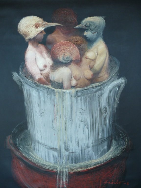 Uno de los artistas más destacados del panorama artístico cubano actual es Roberto Fabelo (Camagüey, Cuba, 1950). Artista de amplio espectro – pintor escultor, dibujante, ilustrador… – su obra se encuentra ya diseminada por varios continentes y ha sido objeto de varios premios y distinciones. Según se comenta en el portal de noticias Cubita Now, su pintura «Humo en los ojos» ha sido adquirida recientemente por 122.500 dólares. Aunque ello no es un critero de calidad, pone de manifiesto el enorme interés que su producción está suscitando.