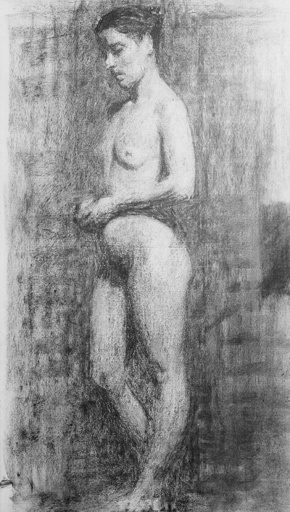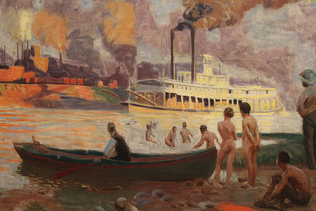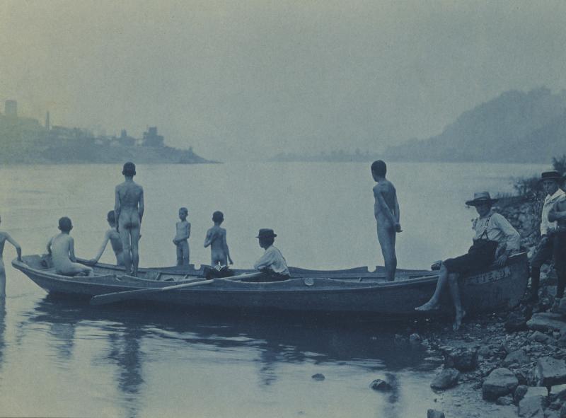 Thomas Pollock Anshutz (Newport, Kentucky, USA, 1851-1912) fue un destacado pintor y profesor, figura destacada de la Pennsylvania Amademy of Fines Arts. Se formó en la misma y, posterioremente, en la Académie Julian de París, como resultaba habital en los artistas americanos del momento. Su obra más conocida es «The Ironworker’s Noontime» pero sus desnudos pueden ponerse en relación con los de Thomas Eakins, de quien fue asistente. Una relación teóricamente amistosa que, sin embargo, no impidió a Anshutz dar la espalda a su amigo cuando se levantó el escándalo por realizar en su estudio obras de desnudos en presencia de ambos sexos. Pintor amante del trabajo al aire libre se apoyó, en ocasiones, en la fotografía (cianotipos) para realizar algunas de sus composiciones. Sus desnudos infantiles muestran composiciones muy cuidadas, que lo alejan de las habituales críticas, y que permiten reflejar un mundo nudo-naturista.