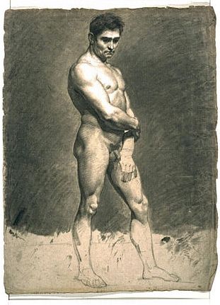 Nuevamente, traigo aquí la obra de un artista poco conocido por sus desnudos. Achile Etna Michalon (París, Francia, 1796-1822) fue, fundamentalmente, un paisajista, ganador del primer «Prix de Rome» para pintura histórica de paisaje. Se le considera el precursor de la Escuela de Barbizon, de la que formó parte su discípulo Corot. Pese a ello, entrebuscando en la Red, he podido encontrar algunos desnudos que les muestro. Masculinos, lógicamente, porque los hombres eran los únicos que podian posar sin ropa.