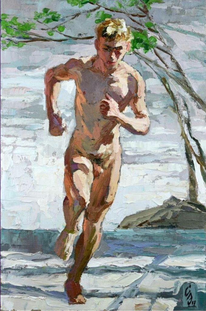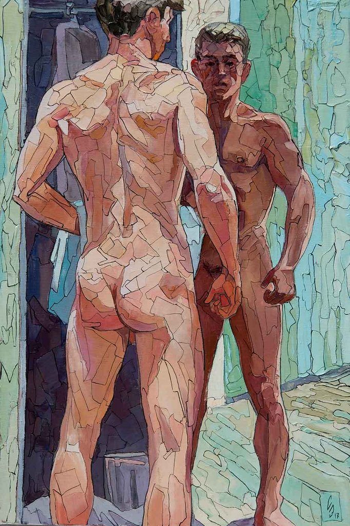 Sergueï Sovkov (Kychtym, Rusia, 1972) es un pintor que, haciendo uso de distintas técnicas, muestra un cuerpo masculino representado con trazos muy perfilados (pese a una paleta amplia que suele mostrar una estructura de mosaico), y una composición en la que el color y luminosidad juegan un papel destacado. Formado en el afamado Instituto Ilia Répine de su país, que da gran importancia a la enseñanza de las academias masculinas, parece ser que ha perdido su condición de docente por aplicación de la ley contra la «propaganda homosexual» del gobierno homófobo ruso. En una entrevista a Christopher Harrity nos comenta los problemas políticos generados por su condición gay.