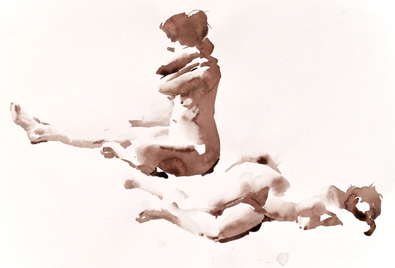 Dentro de las técnicas pictóricas, la acuarela no parece tener demasiados seguidores, especialmente en el mundo contemporáneo. Por ello me complace encontrar a una artista como Wendy Artin (Boston, USA, 1963) que mediante la acuarela crea una obra que aúna calidad y atractivo formal. Formada en la Universidad de Pensilvania, pero también en Roma y París, su obra se encuentra actualmente en muchas colecciones públicas y privadas. Un fuerte clasicismo parece encontrarse en la base de unas figuras dibujadas literalmente por la luz que, interaccionando con la superficie de los cuerpos desnudos insinúa, más que delimita, las formas corporales. El colorido de la obra nos recuerda igualmente las sanguinas de artistas clásicos, como Miguel Angel.