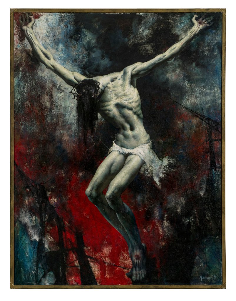 Con el mismo gusto por las luces sombrías y un tono fuertemente expresionista tenemos esta magnífica «Crucifixión»:
