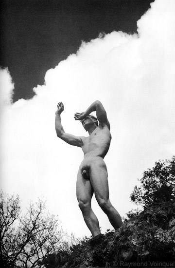 Raymond Voinquel (Fraize, Francia, 1912-1994) fue un fotógrafo, ligado al mundo cinematográfico, que trabajó para los directores más importantes del momento. No puedo poner una relación completa de los mismos. Baste citar, para hacerse una idea, a figuras tan destacadas como Jean Renoir, Alfred Hitchcock, Jean Cocteau, Joseph Mankiewicz o Luis Buñuel. Ilustró algunas obras como el «Narcisse» de Paul Valery, y se reveló como un amante del arte y la belleza. Su trabajo no cinematográfico se centró en la belleza del desnudo masculino en una amplia serie de fotografías homoeróticas inspiradas en la obra de Miguel Angel. En la página web «Les Grands Photographes du 20ème Siècle» se comenta: