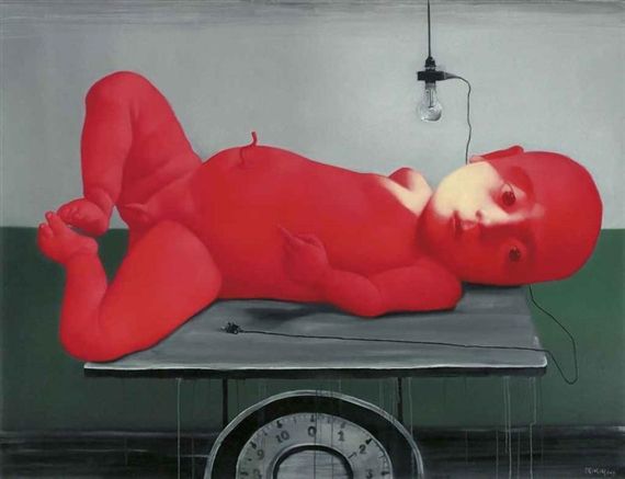 No cabe ninguna duda que el arte contemporáneo en China ha adquirido, en los últimos tiempos, una extraordinaria pujanza. Demasiados siglos de desconfianza Oriente-Occidente separan sus manifestaciones de las usuales en Europa y los Estados Unidos. Cuando la pintura contemporánea China entró en el mercado de la globalización lo hizo a través de la occidentalización de sus principales artistas, que tuvieron en París o en Nueva York, una etapa formativa decisoria. No hablo de una asimilación cultural, sino de un cierto sincretismo que permitió la asimilación por occidente de una tradición exótica, en cuanto ajena. Hoy en día, nadie es ajeno a la globalización, pero hay artistas que parecen manifestar de un modo más intenso, un mundo propio. Pienso que este es el caso de Zhang Xiaogang (Kunming, Yunnan, China, 1958), uno de los artistas más destacados del momento. La reseña que nos proporciona Wikipedia habla de un pintor simbolista y surrealista, pero me parece que estas etiquetas no se aplican, al menos, como resulta tradicional en la Historia del Arte. En cualquier caso, creo que hay dos momentos, muy diferentes, en el arte de Zhang Xiaogang, que se muestran incluso en el tratamiento del desnudo, siempre inhabitual en el arte chino. Veamos algunos ejemplos de su pintura anterior a 1990: