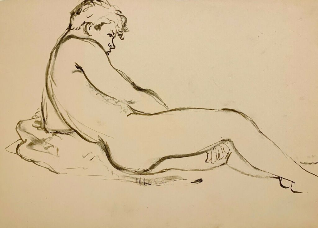 Walter Stuempfig (Germantown, Pennsylvania, 1914-1970) fue profesor de arte y un pintor extraordinariamente prolífico, que abordó temáticas muy amplias. Sin embargo, no existen en la web demasiados comentarios sobre su vida y obra. Diversas páginas de subastas ponen de manifiesto que la valoración de mercado de su producción es muy variable. Pero casi no existen valoraciones críticas sobre la misma. Prácticamente sólo encuentro un artículo publicado en el obituario del New York Times que me resulta poco concreto y oscuro. Se le considera como un artista realista, heredero en parte de la obra de Thomas Eakins, pero que va derivando hacia un colorismo expresionista. Lo primero me parece evidente, pero lo segundo no lo aprecio en sus desnudos. También, el citado artículo, etiqueta la obra como arte gay, término en general muy ambiguo, especialmente cuando el artista estuvo casado hasta el fallecimiento de su esposa. Pero, eso sí, la casi totalidad de sus desnudos son masculinos.