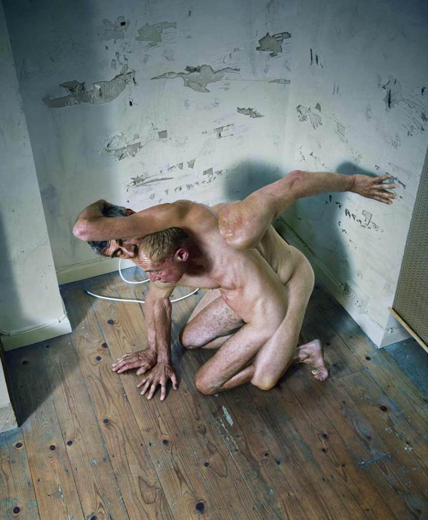 Antony Crossfield (Londres, reino Unido, 1972) nos muestra, en sus fotografías, una realidad inventada. Cuerpos fusionados con otros cuerpos o con objetos. Cuerpos imposibles que viven una historia que nos resulta ajena y misteriosa pero real, y por ello nos desconciertan. No resulta raro que el artista muestre su admiración, entre otros, por Francis Bacon. En ese artículo, y ante la pregunta de los posibles efectos que su obra puede provocar el espectador, comenta: