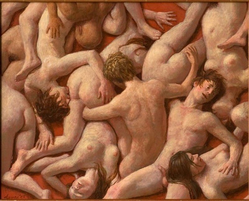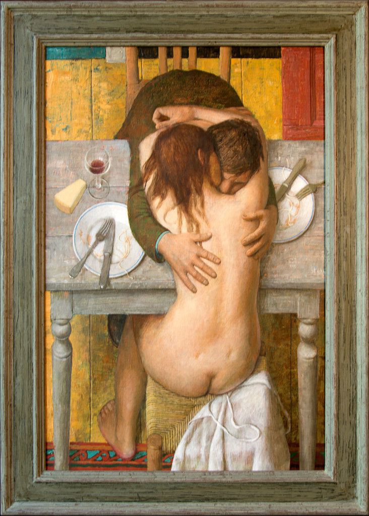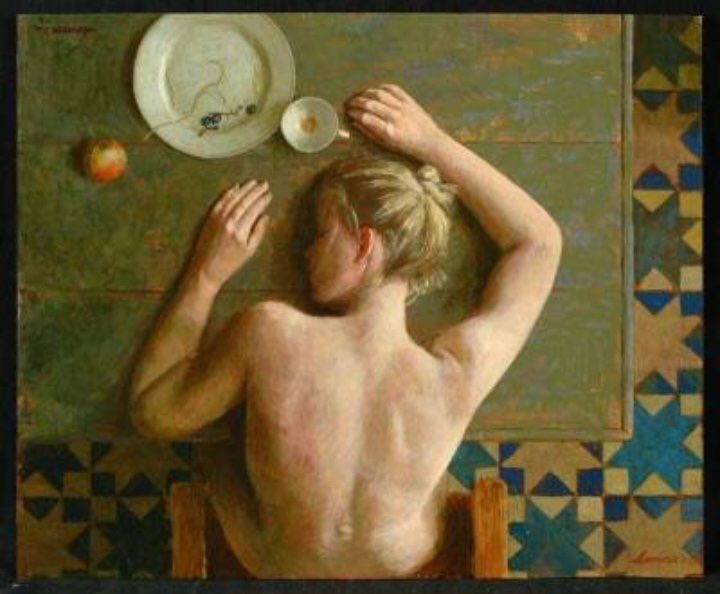 Kene Grégoire (Teteringen, Países Bajos, 1951) es uno de esos pintores que suelen considerarse representantes del denominado – a falta de un nombre mejor – Nuevo Realismo. En este movimiento, en el que parecen aunarse las formas realistas con un cierto carácter psicológico y social, podemos incluir al americano Hopper. Sus estilos son, lógicamente diferentes pero parece existir en la obra de ambos artistas, un cierto aire de intimidad y tristeza que los vincula. La técnica, al decir de Francisco G. Expósito en su blog, consiste en acrílicos en los que los colores se aplican como esmaltes sobre una grisalla de base, al modo del siglo XVII.