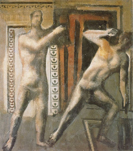 Cuando intentamos hacer un mapa mental de la situación del desnudo en el arte en las primeras décadas del siglo XX, tendemos a basar el realismo exigido – imprescindible para poder hablar de cuerpo desnudo – en el realismo desarrollado en la segunda mitad del XIX, con algunos toques de simbolismo, y en la contribución de los expresionistas, usualmente alemanes. No fueron los únicos movimientos artísticos ajenos a los experimentos de la abstracción, pero fueron decisorios. Sin embargo, no debemos olvidarnos de las corriente clasicistas que, en Italia de los años 20 dieron lugar a un movimiento destacado: el Novecento. Este movimiento se centró en una Roma clásica idealizada, con formas muy geometrizantes y un cierto carácter surrealista en los paisajes. Es muy conocida la obra de Giorgio de Chirico o Carlos Carrá, con su carácter metafísico. En este grupo podemos incluir a Mario Sironi (Sassari, Italia, 1885-1961). Su producción se inició en el futurismo (estuvo en contacto con Gino Severini y Umberto Boccioni), para pasar a un arte metafísico de terminó en un realismo plenamente novecentista. Aquí les muestro algunas de sus obras que expresan, de algún modo, una transición del cubismo al realismo.
