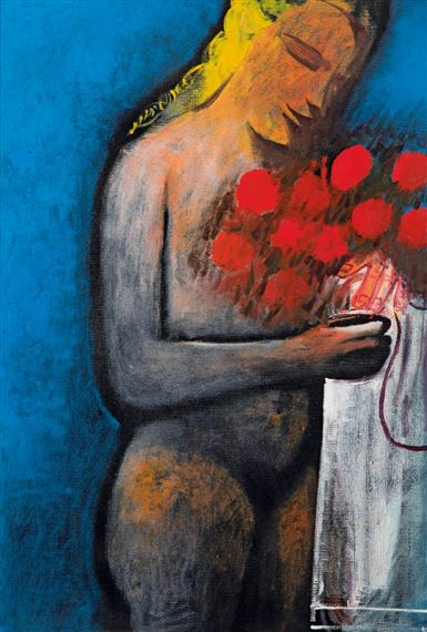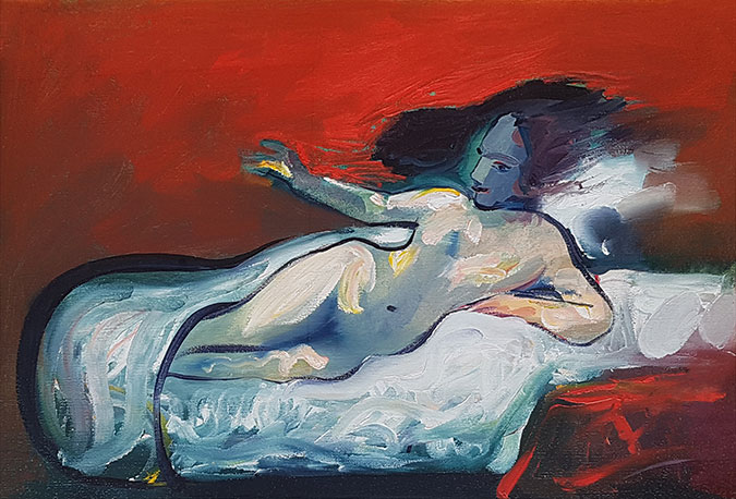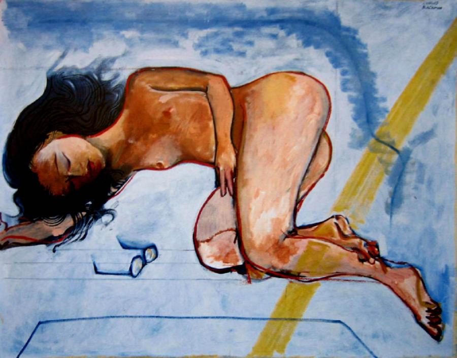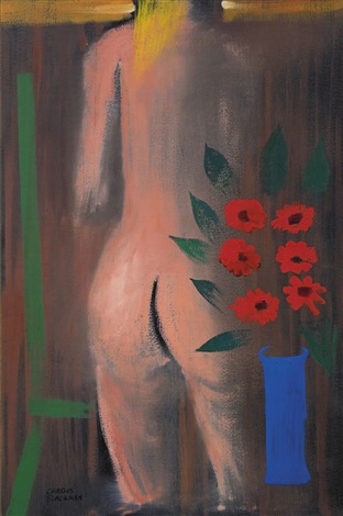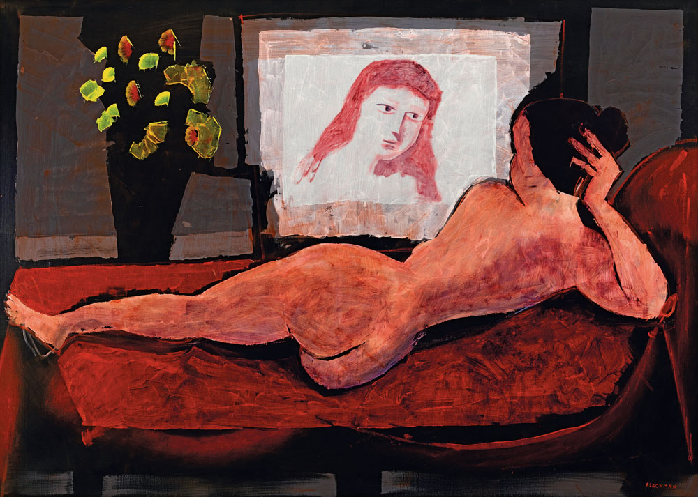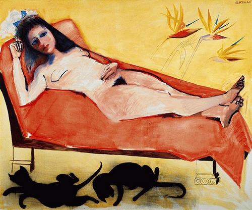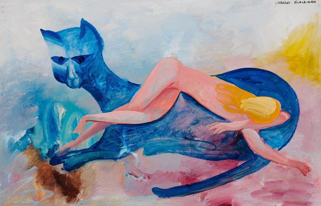 Uno de los pintores australianos más destacados del siglo XX fue Charles Blackman (Sidney, Australia, 1928-2018). En 1959 fue uno de los firmantes del «Manifiesto de las Antípodas», que aglutinó a un grupo de artistas australianos a favor de la figuración y en contra del expresionismo abstracto. Sin embargo, podemos comprobar en sus pinturas que, el carácter realista de las mismas se encuentra muy alejado de ese esquema decimonónico que se mantuvo soterrado mucho tiempo en el siglo pasado. Difícilmente etiquetable en un estilo artístico particular, sus obras suelen mostrar un toque de ensoñación y misterio. La obra gráfica de este artista es muy abundante, y se hizo famoso por sus ilustraciones de Alicia en el País de las Maravillas de Lewis Carroll. Las obras que le muestro corresponden, sin embargo, a sus desnudos pictóricos. Con un colorismo»fauve» nos muestra un mundo femenino, a menudo acompañado de gatos, su animal favorito.