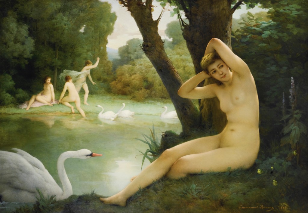 Las reseñas en la web sobre Emmanuel Benner (Mulhouse, Haut-Rhin, Francia, 1836-1896) son bastante escasas, pese a la abundancia de reproducciones artísticas que tenemos del mismo. El pintor fue miembro de una familia artística (también lo fue su hermano gemelo Jean),y se destacó con el desnudo femenino, que se muestra a menudo en entornos románticos, dentro de la tradición de la época. Estuvo en contacto con impresionistas como Degas, que dejan también su impronta en muchas de sus obras. Se comenta que se encuentran presentes también en su pintura temas orientalistas, aunque yo no los aprecio en ninguna de las obras que incluyo como ejemplos: