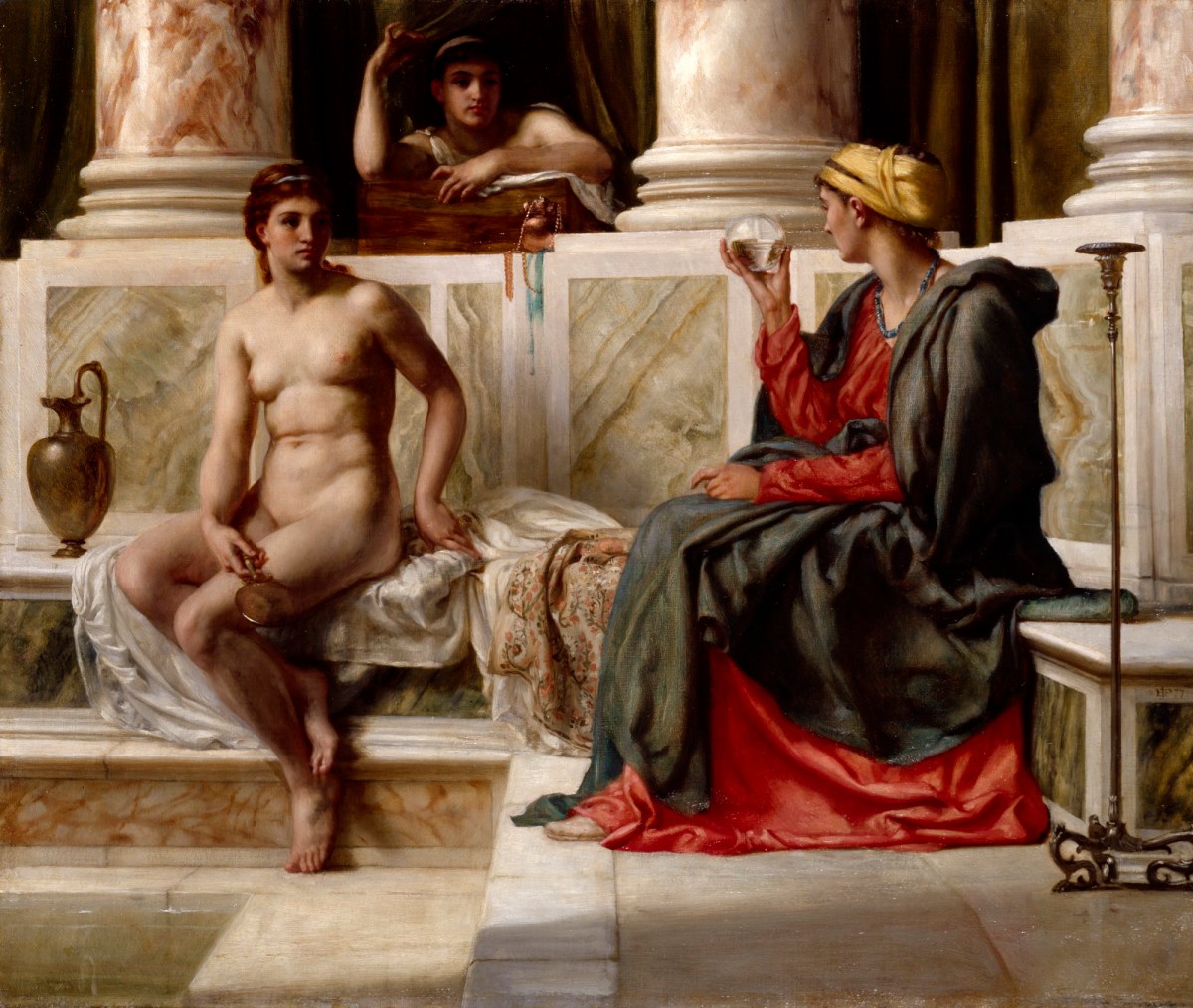 Pese a su nacimiento en París, Sir Edward John Poynter (París, Francia, 1836-1919) fue un artista inglés. A ese país se trasladó con su familia desde muy joven y en el mismo realizó sus primeros estudios artísticos. Su obra tiene una fuerte impronta clasicista con un interés destacado en los temas de carácter histórico, mostrando ocasionalmente un cierto orientalismo. Sin embargo, fue atraído por el movimiento simbolista, particularmente por los prerrafaelistas. Durante una estancia en Roma – que llevó a cabo por motivos de salud – conoció a una de las figuras destacadas del movimiento, Frederic Leighton, por el que sintió una gran admiración. También conoció al impresionista-simbolista americano J.M. Whistler y fue cuñado de uno de los iconos prerrafaelistas: Edward Burne-Jones.
