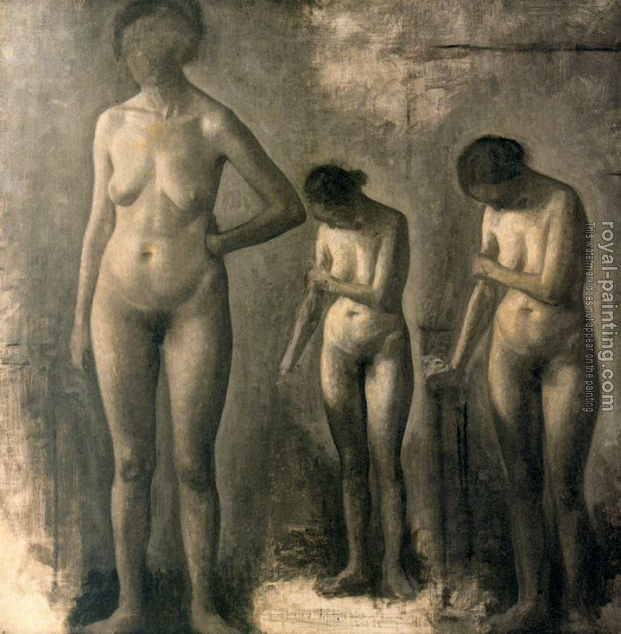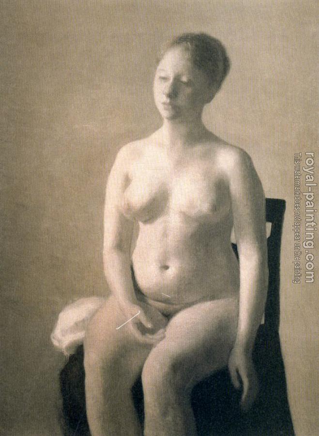 Wilhelm Hammershoi (Copenhague, Dinamarca, 1864-1916) no fue un pintor de desnudos. Al menos no en el sentido convencional. No es el cuerpo el protagonista directo de sus obras sino la intimidad y esta puede mostrarse en una habitación vacía en la que los rayos de luz se materializan al reflejar innumerables partículas de polvo en suspensión. Vemos en su obra muchas habitaciones como ésta, envueltas en una luz misteriosa que incide en los objetos sin terminar de delimitarlos. Figuras vestidas (a menudo de espaldas) o desnudas, frecuentemente aisladas y ocupadas en asuntos domésticos. Hay algo de Vermeer en este pintor de la luz. Por ello, quiero iniciar esta presentación con esa habitación que no muestra ningún cuerpo humano, pero que pudiera estar presente en algún rincón, quizás desnudo. También pudiera reflejar la intimidad del observador.