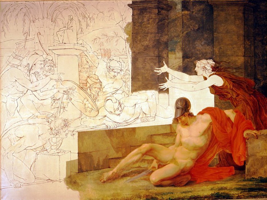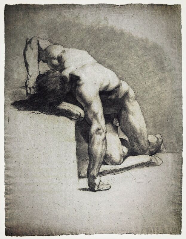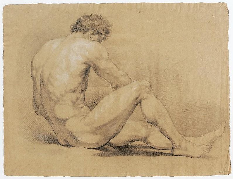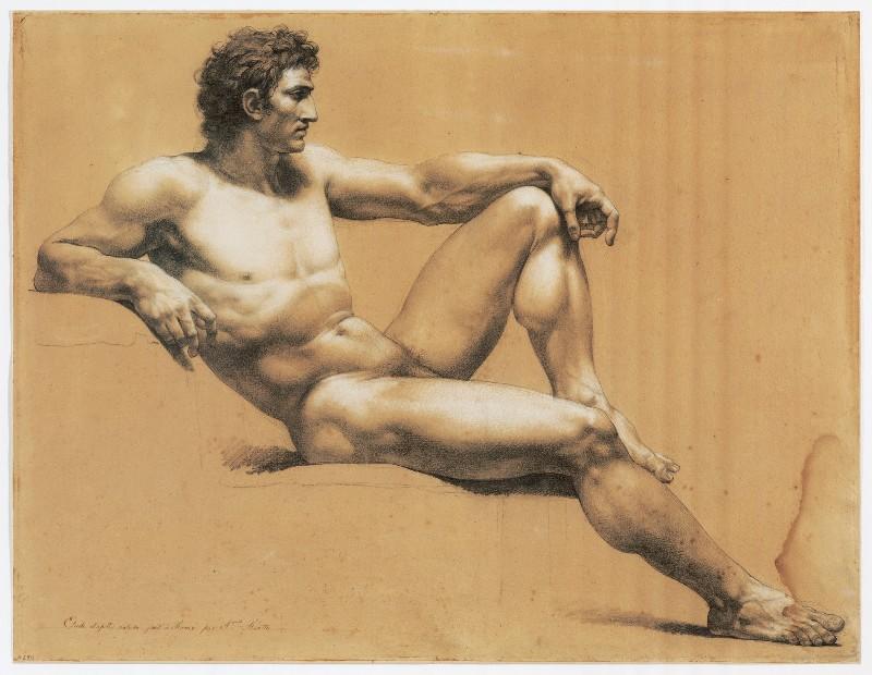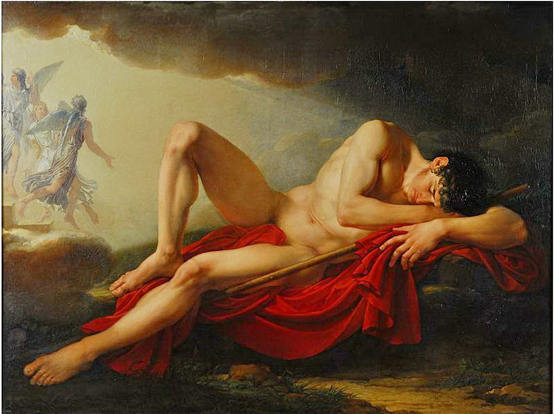 Jacques Réattu (Arles, Francia, 1760-1833) fue un «pintor de historia» – el género más prestigiado en el arte del momento – que desarrolló en la Academia Real de Pintura y Escultura a la que entró a la edad de 15 años. En la misma fue alumno, entre otros, de Jean-Baptiste Regnault. En 1980 obtuvo el Premio de Roma, al que pudo optar, pese a que ya se había iniciado la Revolución Francesa, pero del que no pudo disfrutar de los cuatro años de estadía en Roma, teniendo que volver a su país inmerso en el conflicto. En éste decora varios edificios públicos de Marsella, Lyon y Nimes con producciones alegóricas y mitológicas. Suele indicarse que sólo realizó un trabajo de tipo religioso, sobre el Bautismo de San Pablo, para la Iglesia San Pablo de Beaucaire. Sin embargo, encuentro en la Red al menos un dibujo, también relacionado con San Pablo, o la pintura «El sueño de Jacob» . Ambas obras forman parte de esta pequeña selección de desnudos.