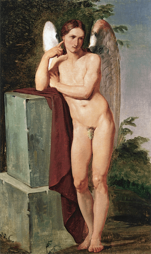 Francesco Hayez (Venecia, Italia, 1791-1882) fue el mayor representante del romanticismo italiano, aunque tuvo a Canova – el célebre artista neoclásico – como uno de sus maestros más destacados. Esta influencia neoclásica se aprecia en muchos de sus retratos desnudos, especialmente los masculinos. De hecho, y según se indica en la Wikipedia, «El historiador del arte Corrado Ricci describió a Hayez como un clasicista que luego evolucionó hacia un estilo de tumulto emocional». Los desnudos femeninos parecen más influenciados por la corriente orientalista que por el propio clasicismo. En todo caso, sus obras son muy numerosas, acordes con la larga vida del artista, y en ocasiones se repiten sus motivos con variaciones mínimas. Su pintura más conocida, y que le valió desde un principio la fama, fue «el beso«, claramente romántica.