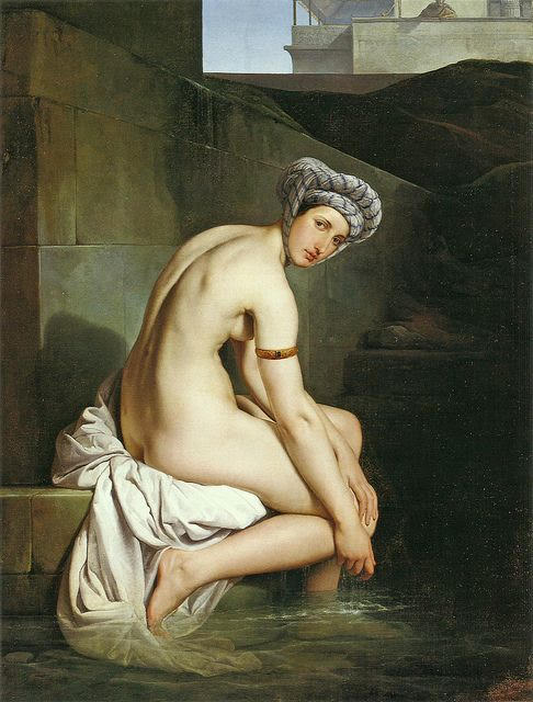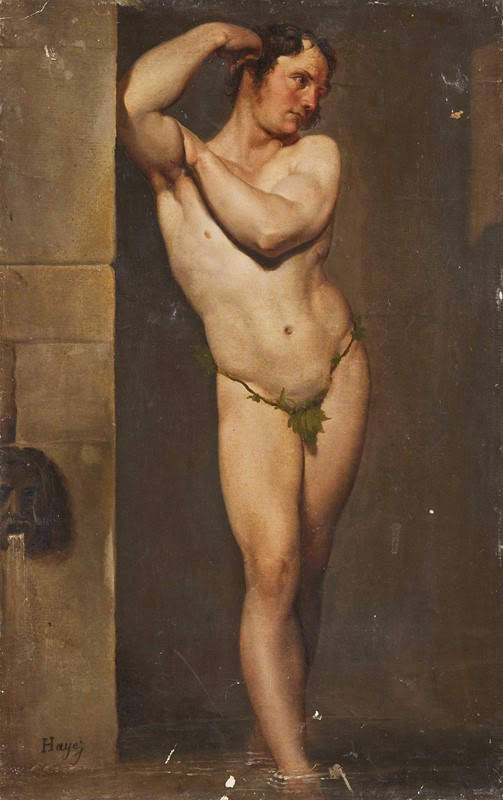 Francesco Hayez (Venecia, Italia, 1791-1882) fue el mayor representante del romanticismo italiano, aunque tuvo a Canova – el célebre artista neoclásico – como uno de sus maestros más destacados. Esta influencia neoclásica se aprecia en muchos de sus retratos desnudos, especialmente los masculinos. De hecho, y según se indica en la Wikipedia, «El historiador del arte Corrado Ricci describió a Hayez como un clasicista que luego evolucionó hacia un estilo de tumulto emocional». Los desnudos femeninos parecen más influenciados por la corriente orientalista que por el propio clasicismo. En todo caso, sus obras son muy numerosas, acordes con la larga vida del artista, y en ocasiones se repiten sus motivos con variaciones mínimas. Su pintura más conocida, y que le valió desde un principio la fama, fue «el beso«, claramente romántica.