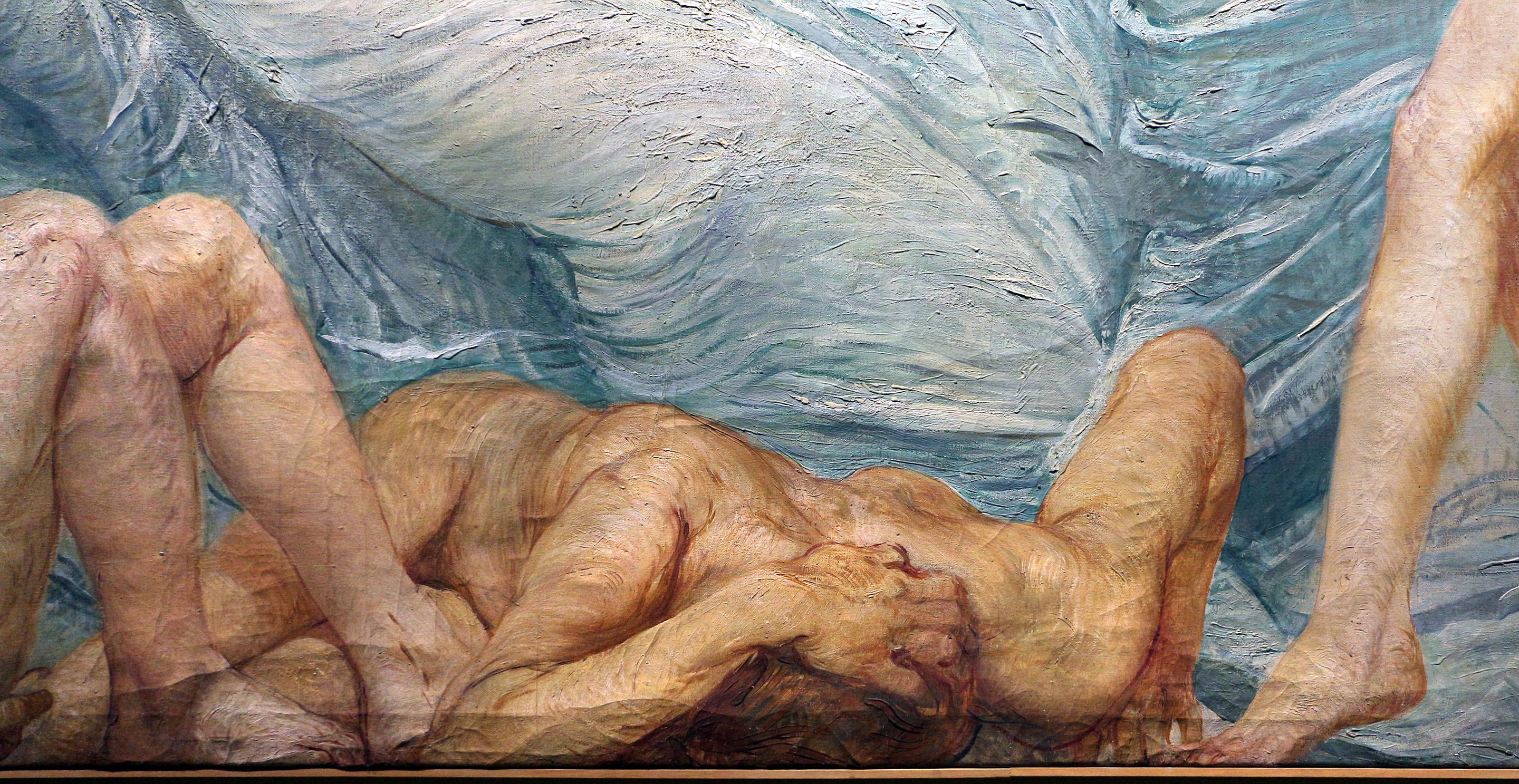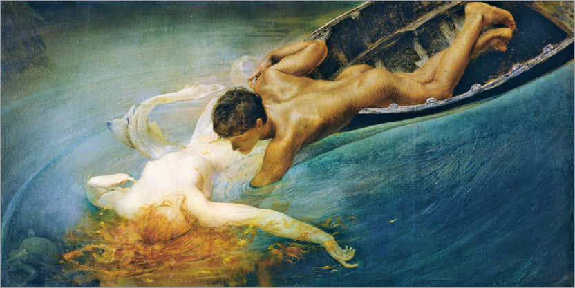 Giulio Aristide Sartorio (Roma, Italia, 1860-1932) fue un artista, fundamentalmente autodidacta, que trabajó «para otros pintores» desde una edad muy temprana. Su propia producción siguió inicialmente la línea de Fortuny y, posteriormente, se adhirió a la estética prerrafaelita de Burne-Jones, Rosseti y William Morris, significándose dentro del movimiento simbolista. En este movimiento podemos clasificar obras como «La sirena» con la que voy a iniciar esta muestra de desnudos.