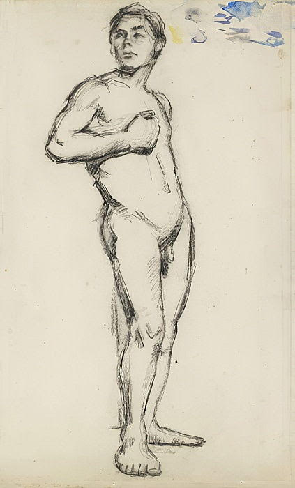 Dentro de los desnudos de Paul Cézanne (Aix-en-Provence, Francia, 1839-1906) se encuentran numerosas obras cuya temática se aparta de los característicos bañistas que acabamos de ver. Dibujos de desnudos «de estudio», dentro del esquema realista de ese siglo y que también observamos en otros pintores impresionistas, elaboraciones que se justifican con alusiones mitológicas, algunos retratos… Para muchas de estas obras posaron familiares, dada la dificultad de encontrar modelos en aquellos tiempos. En otras ocasiones lo hizo de memoria. Les muestro algunos de ellos.