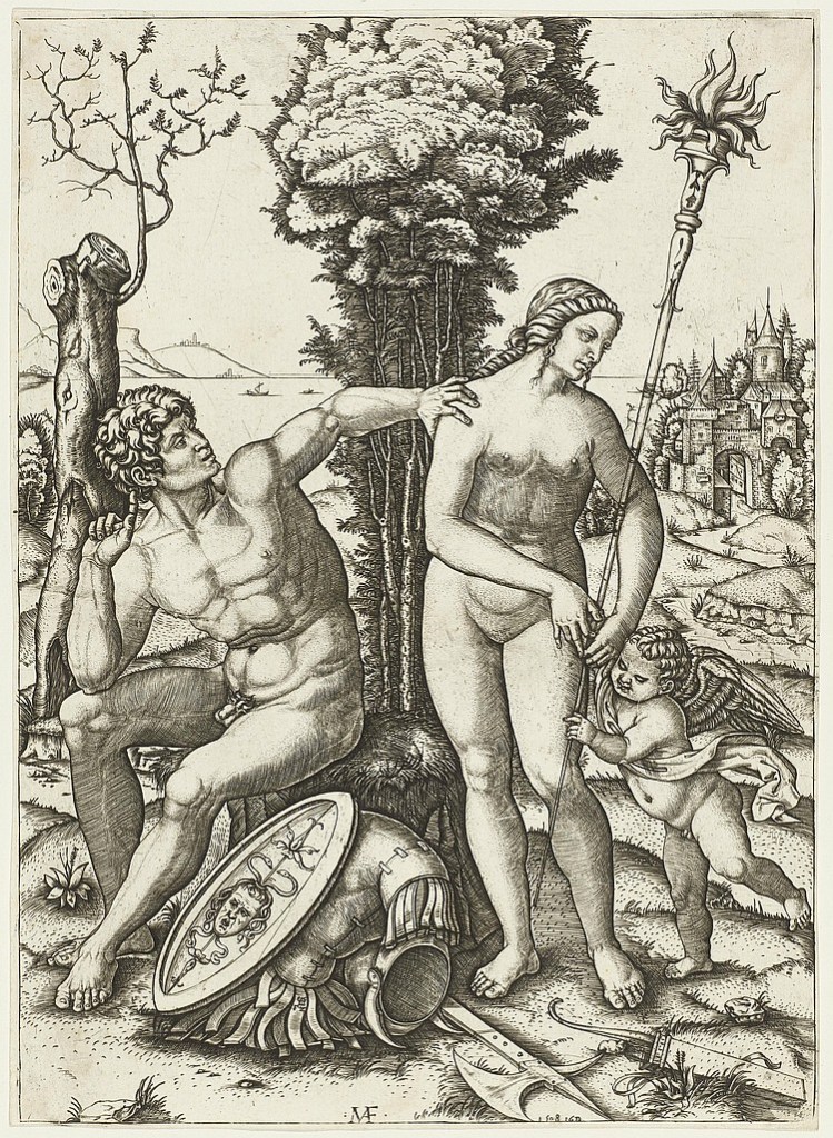 Termino con el grabado de Marcantonio Raimondi sobre la obra de Rafael «El juicio de Paris» que será el modelo compositivo que utilizaría Manet para su célebre «Almuerzo en la hierba»:
