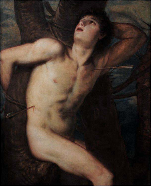 También resulta curioso su «San Sebastián». Este santo ha sido siempre un pretexto para pintar una figura masculina desnuda y se convertirá, con los siglos, en un símbolo del mundo gay. Sin embargo, es raro que se muestre sin ningún elemento de ropa.