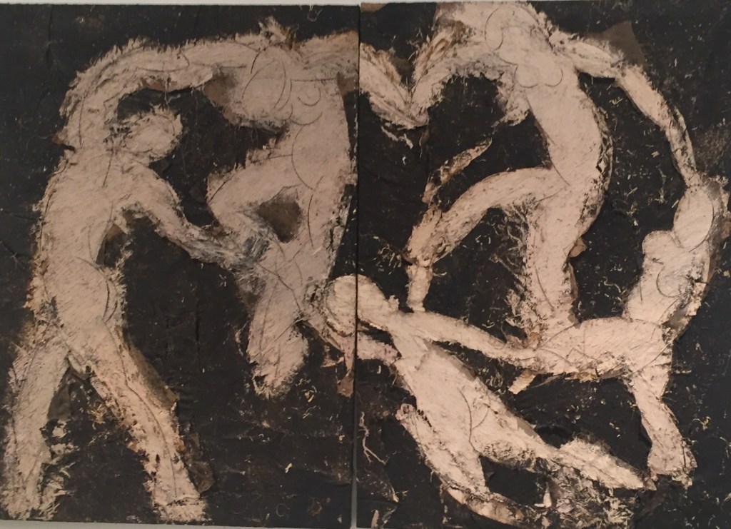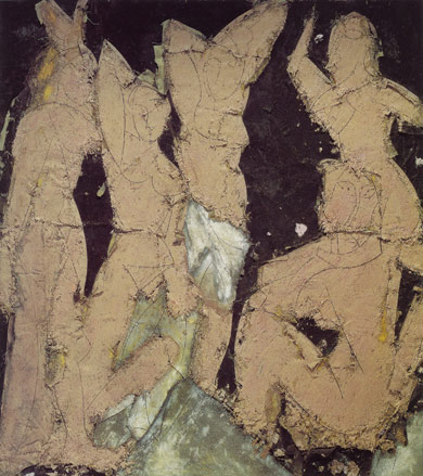 La obra del pintor y escultor Manolo Valdés (Valencia, España, 1942) supone una ruptura en el panorama del arte contemporáneo español. Aunque inició su andadura profesional en 1959, después de abandonar la Escuela de Bellas Artes de San Carlos, su éxito se inicia con la fundación, en 1964, del grupo artístico conocido como «Equipo Crónica». Este grupo se apartó del informalismo imperante en la vanguardia española y tomó partido por una figuración que podríamos enmarcar en un pop europeo. A la muerte de uno de los fundadores del grupo (Rafael Solbes) y disuelto el mismo, siguió su andadura personal en los años ochenta. Sin abandonar el referente figurativo, su pintura se aproxima al «arte bruto» de Burri o Dubuffet. Por tanto, la idea de desnudo o vestido, que pudiésemos aplicar aquí es más conceptual que formal. Son frecuentes la recreaciones de temas de Rembrandt y, fundamentalmente, de Matisse.