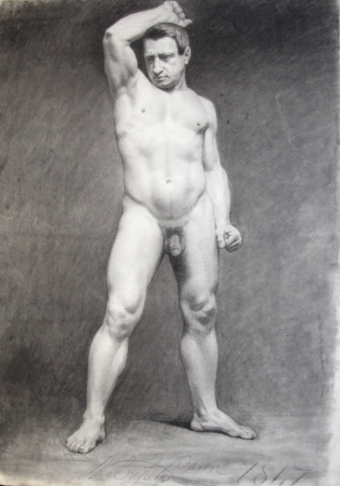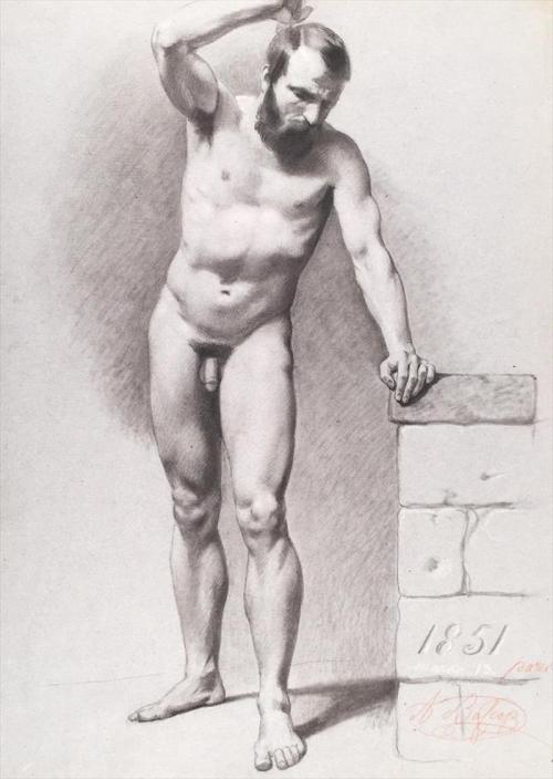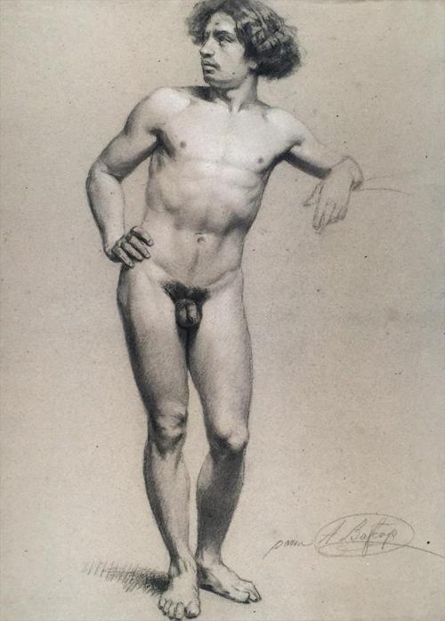 Entre el neoclasicismo – con su búsqueda de una belleza ideal basada en los cánones de la antigüedad greco-romana – y las corrientes románticas, aparece el academicismo. Aunque bastante normatizado por la Academia de Bellas Artes de París, no llega a constituir un verdadero estilo, aunque su influencia sobre el realismo del siglo XIX es muy palpable y se mantiene hasta entrado el siglo XX. Lo observamos, incluso, en muchos dibujos y pinturas de estudio de los pintores impresionistas. Les muestro aquí la obra de Alexis Bafcop (Cassel, Francia, 1804-1895). Quizás no haya sido un pintor muy relevante ya que encuentro poca información sobre su vida y obra pictórica más allá de un pequeño artículo en la Wikipedia francesa. Sin embargo, abundan sus dibujos en los que se aprecia una gran maestría.