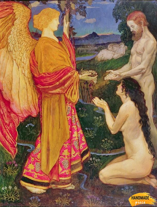John Liston Byam Shaw (Madras, India, 1872-1919) nació en una familia británica residente en la India, pero volvió a Inglaterra, para educarse, cuando tenía seis años de edad. Su formación artística también se realizó en este país, donde trabajó como pintor, ilustrador y diseñador. Cuando decayó el interés público por su trabajo se dedicó a la educación. Su estilo, modernista, se vio fuertemente influenciado por los prerrafaelitas y dentro del mismo tenemos algunas obras muy relevantes como Adán, Eva, la Serpiente y el Edén:
