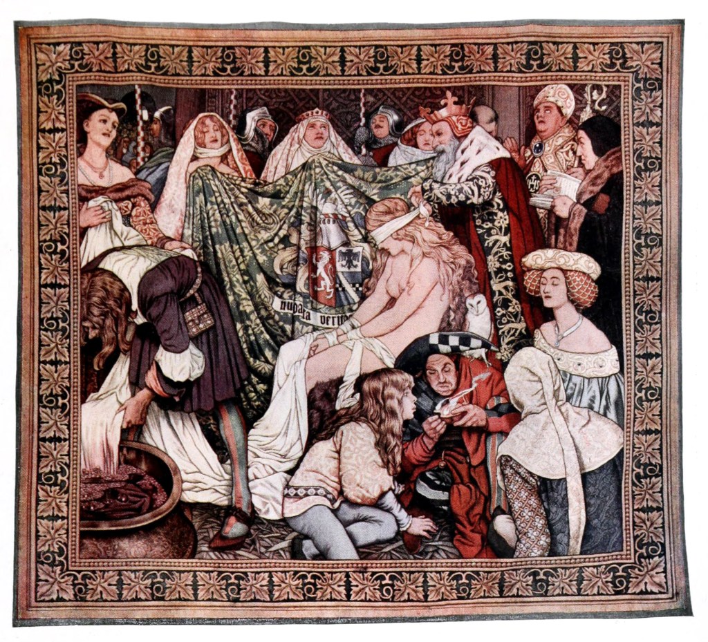 Su labor como dibujante, ilustrador y decorador puede apreciarse en otras obras como este tapiz sobre la Verdad desnuda: