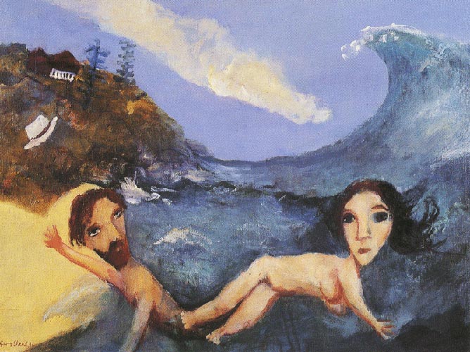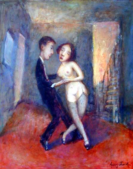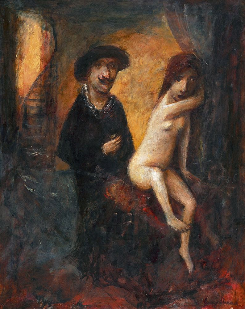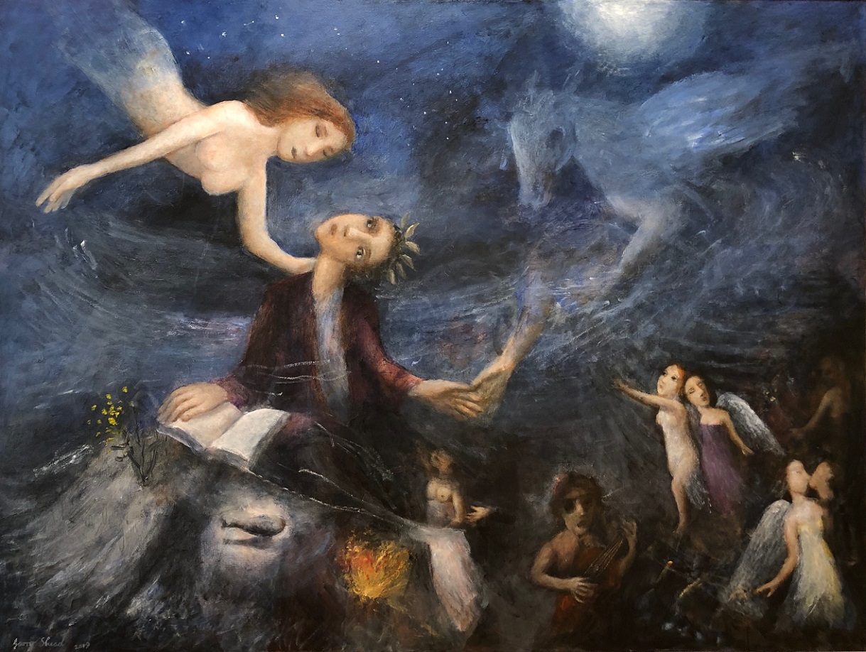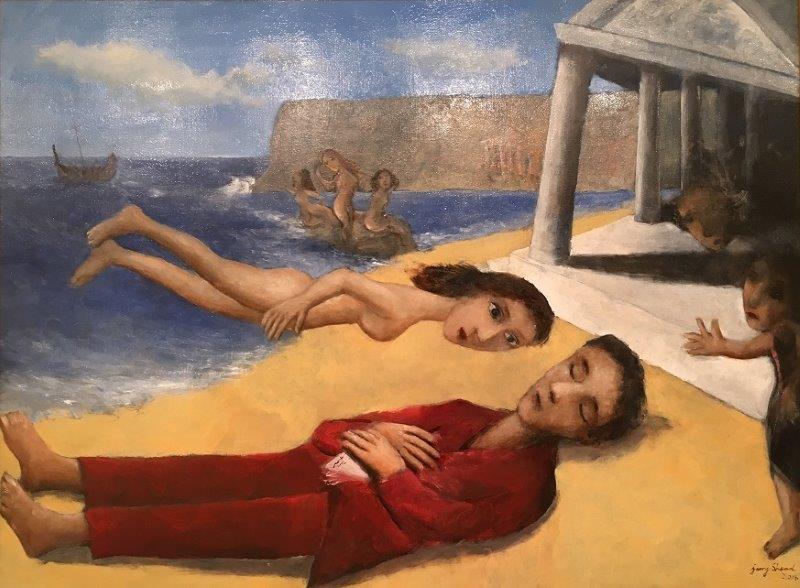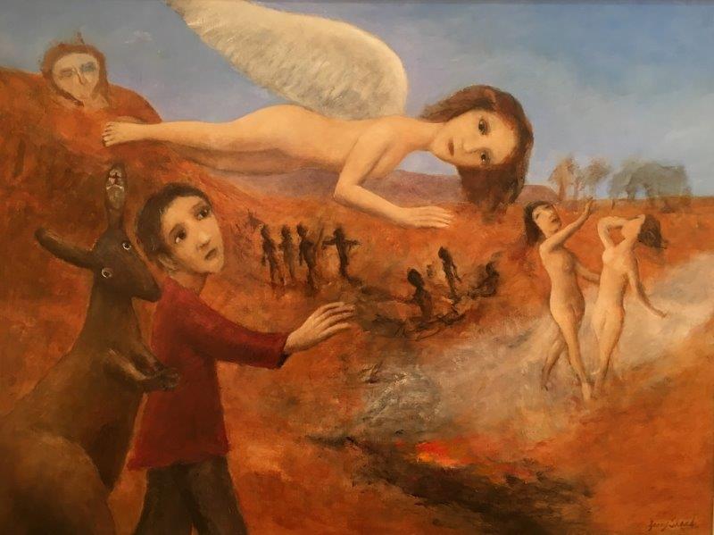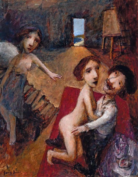 Garry Shead (Sidney, Nueva Gales del Sur, Australia, 1942) es uno de los referentes del retrato australiano contemporáneo. Como tal ha sido ganador del premio Archibald en 1992, y finalista del mismo en 2009 y 2012, así como el premio Dobell, en el año 2004. Aunque viajó por distintos países europeos y asiáticos, su formación es, básicamente, local. Su obra se ve representada en la National Gallery of Australia y otras importantes colecciones australianas y de todo el mundo. Sus desnudos, muy característicos, son fácilmente reconocibles y parecen evocar, en muchos momentos, a grandes pinturas clásicas. Por ello, quiero iniciar esta muestra con una pintura, «The Circling Cosmos», que me recuerda la obra de Chagall.