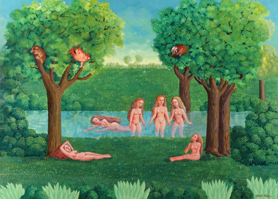 «Esto de Rousseau me lo ha dicho mucha gente. Pero creo que esta influencia es sólo aparente. O sea, que es más el tema que luego la realidad de los cuadros. Tal vez yo tengo un mundo, esto que hago de familias, de decorar fotos antiguas, un poco de la época de Rousseau, y además, con animales»